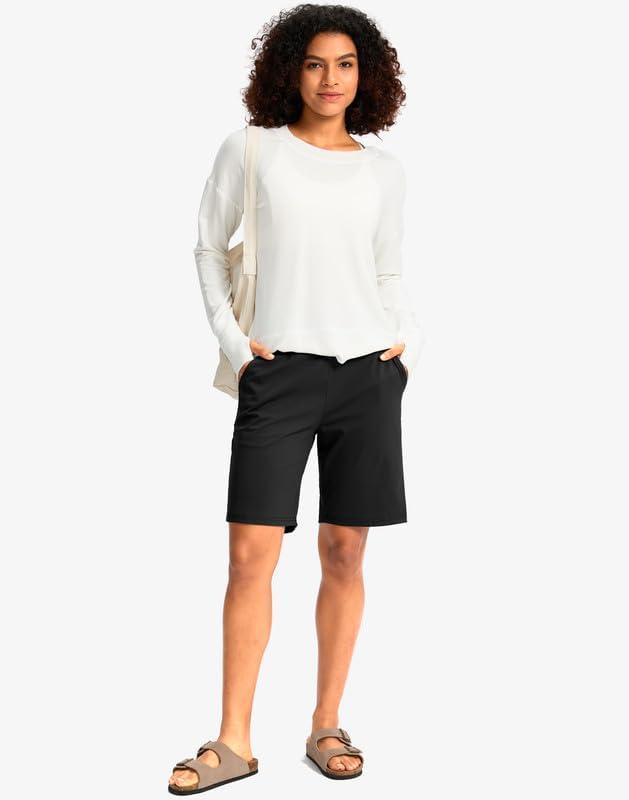 G Gradual Women’s Bermuda Long Shorts with Pockets 9″ High Waisted Knee Length Shorts for Women Walking Athletic Workout(Black)