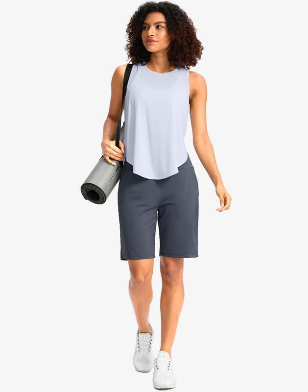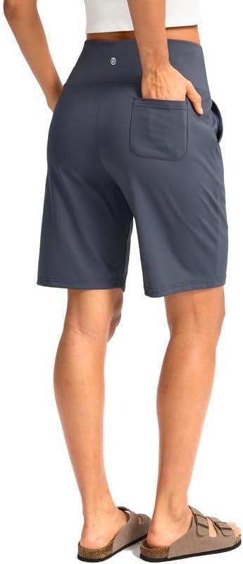 G Gradual Women’s Bermuda Long Shorts with Pockets 9″ High Waisted Knee Length Shorts for Women Walking Athletic Workout(Dusty Blue)