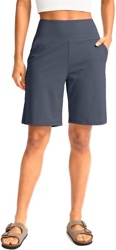 G Gradual Women's Bermuda Long Shorts with Pockets 9" High Waisted Knee Length Shorts for Women Walking Athletic Workout(Dusty Blue)