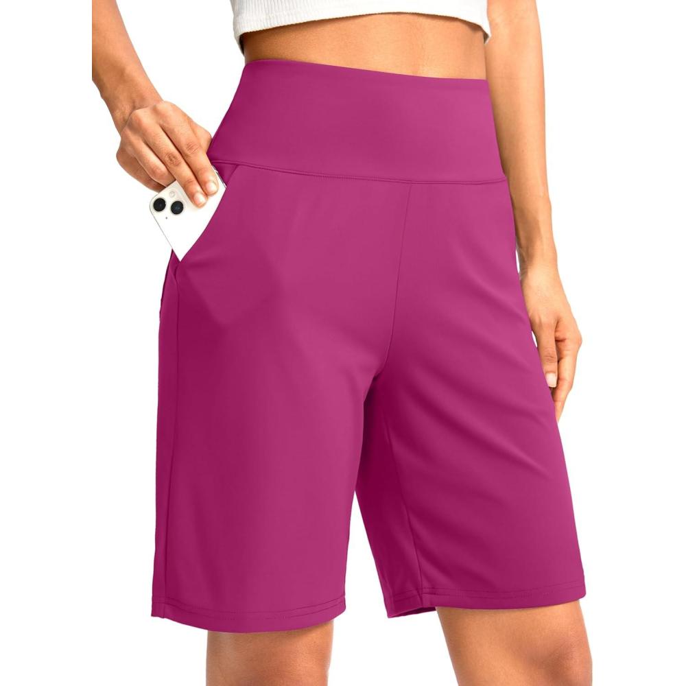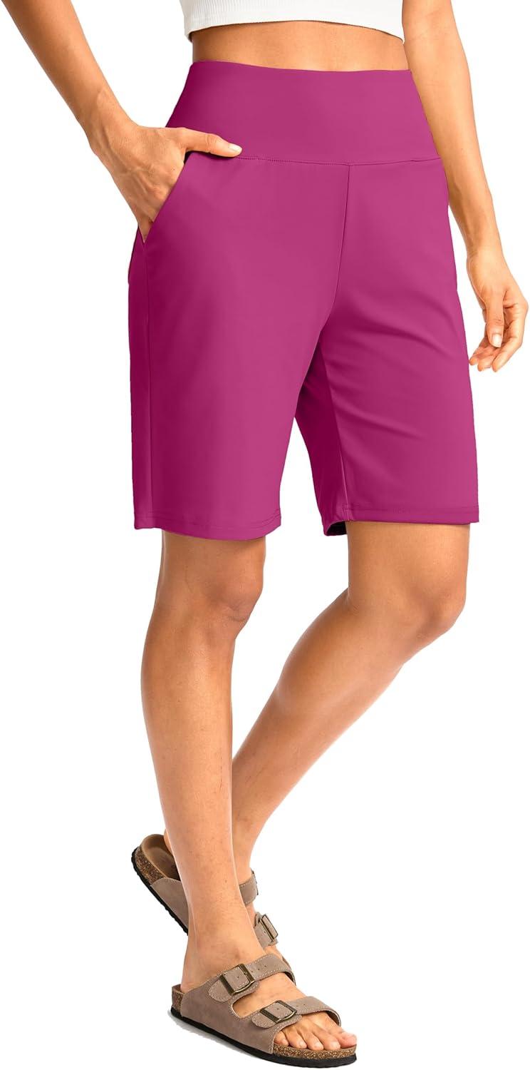 G Gradual Women’s Bermuda Long Shorts with Pockets 9″ High Waisted Knee Length Shorts for Women Walking Athletic Workout(Velvet Dust)