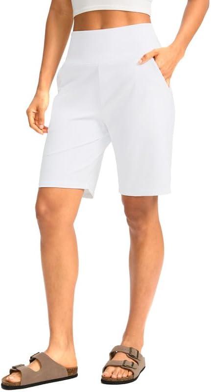 G Gradual Women's Bermuda Long Shorts with Pockets 9" High Waisted Knee Length Shorts for Women Walking Athletic Workout(White)