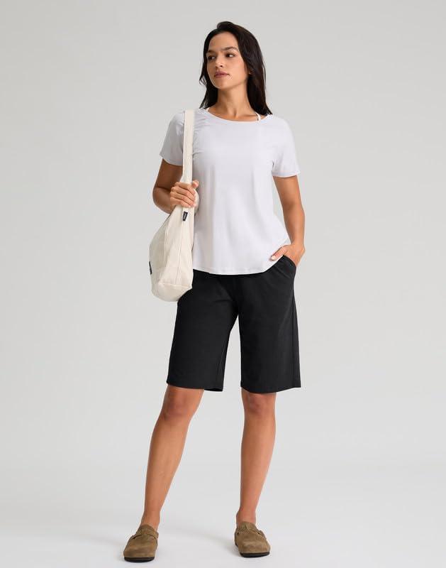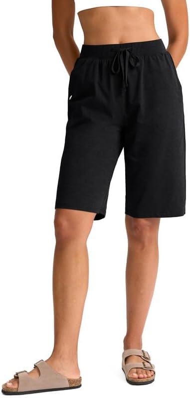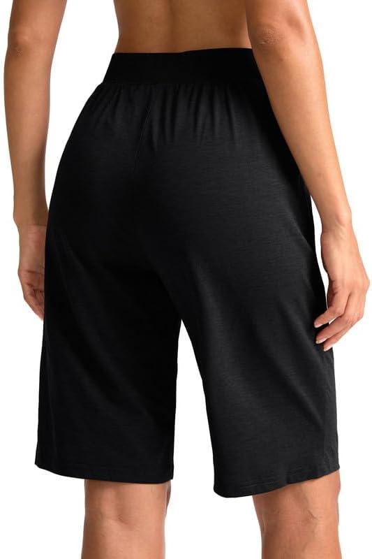 G Gradual Women's Bermuda Shorts 11" Knee Length Long Comfy Drawstring Walking Shorts for Women with Deep Pockets(Black)
