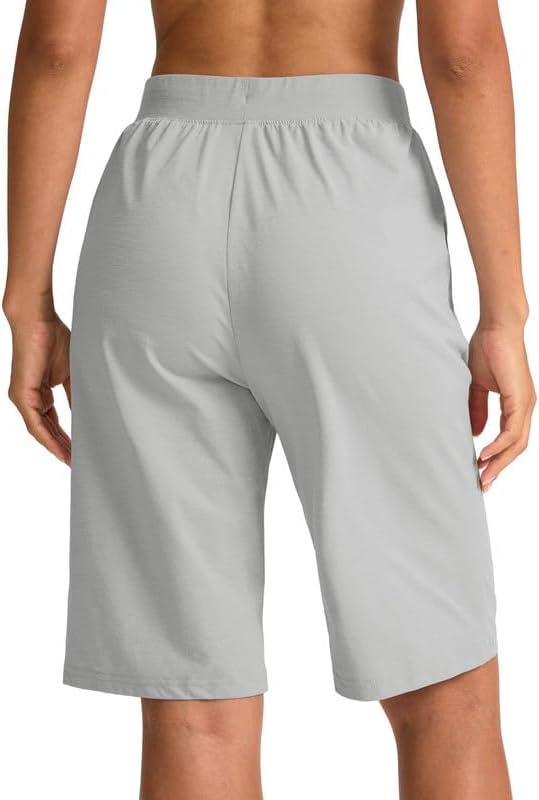 G Gradual Women's Bermuda Shorts 11" Knee Length Long Comfy Drawstring Walking Shorts for Women with Deep Pockets(Light Grey)