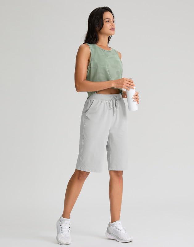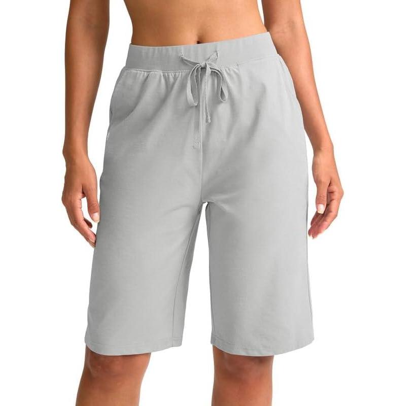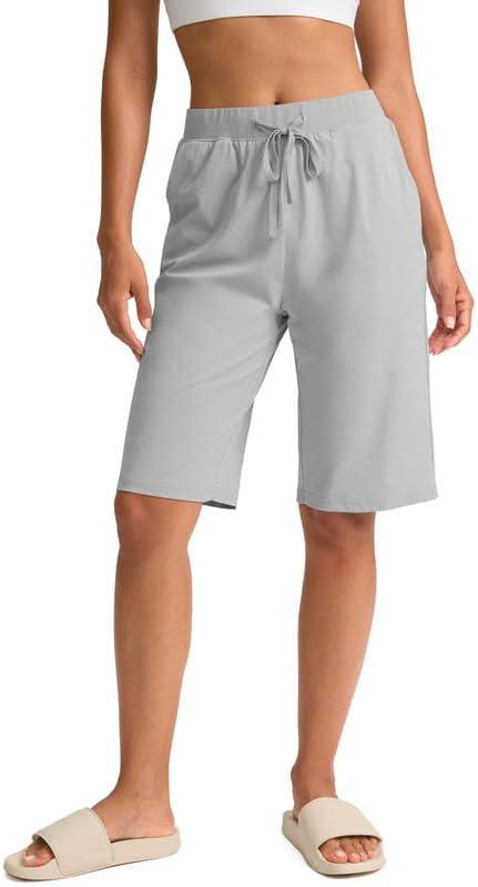 G Gradual Women’s Bermuda Shorts 11″ Knee Length Long Comfy Drawstring Walking Shorts for Women with Deep Pockets(Light Grey)