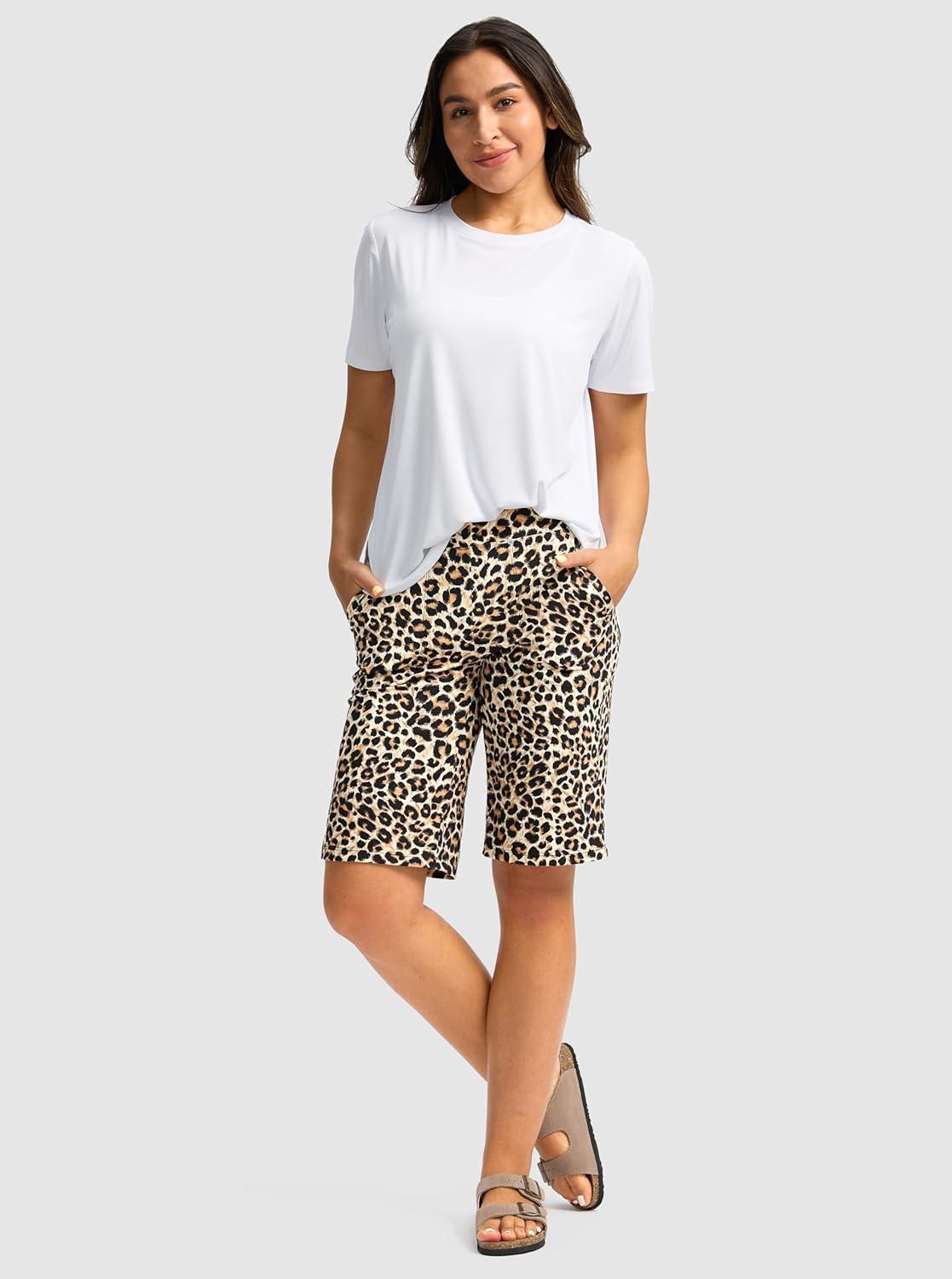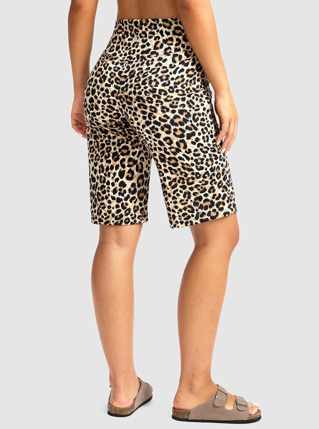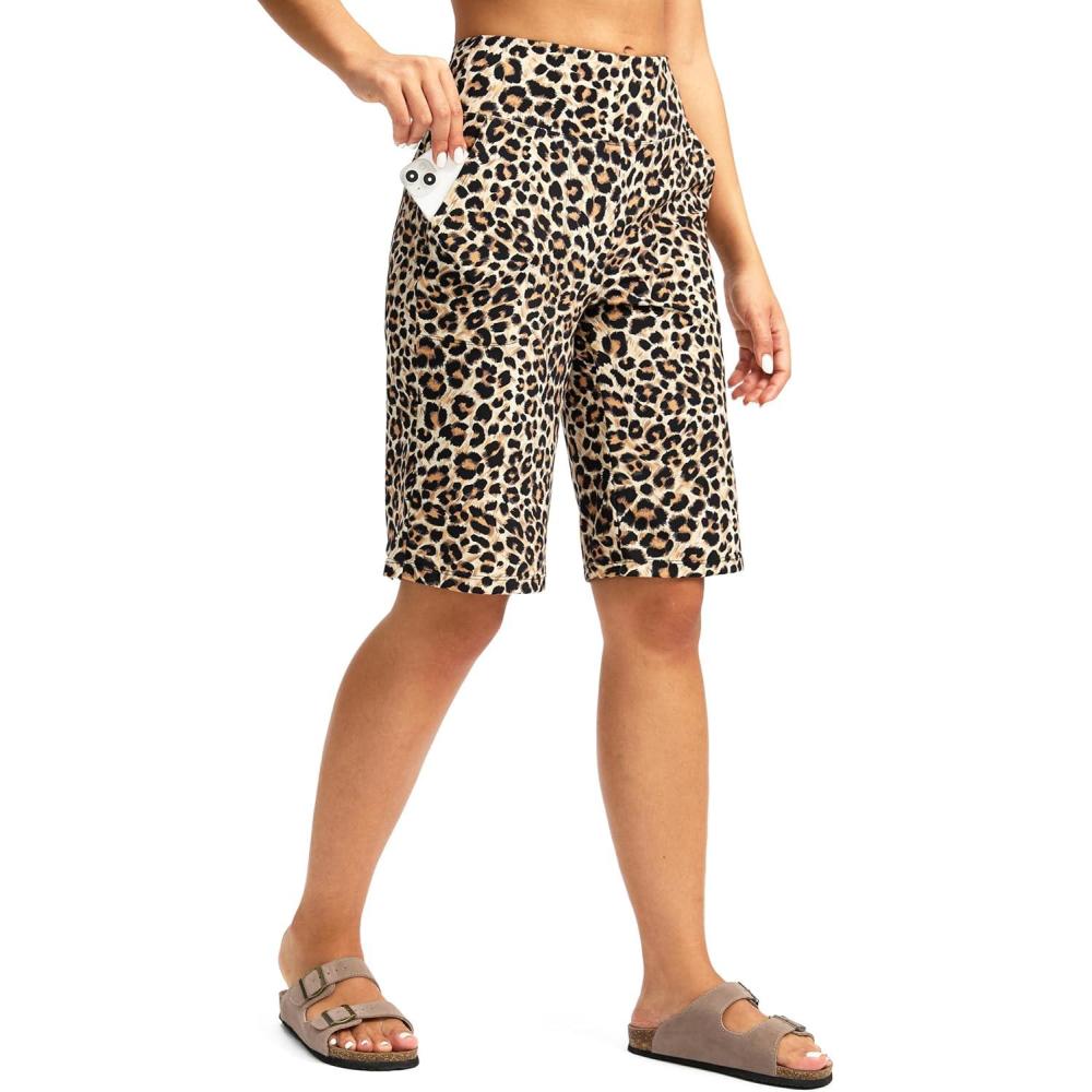 G Gradual Women’s Bermuda Shorts 12″ Knee Length with Pockets High Waisted Stretch Long Shorts for Women Casual Walking(Brown Leopard)