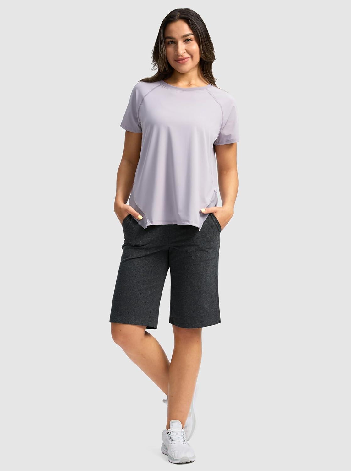 G Gradual Women's Bermuda Shorts 12" Knee Length with Pockets High Waisted Stretch Long Shorts for Women Casual Walking(Charcoal)