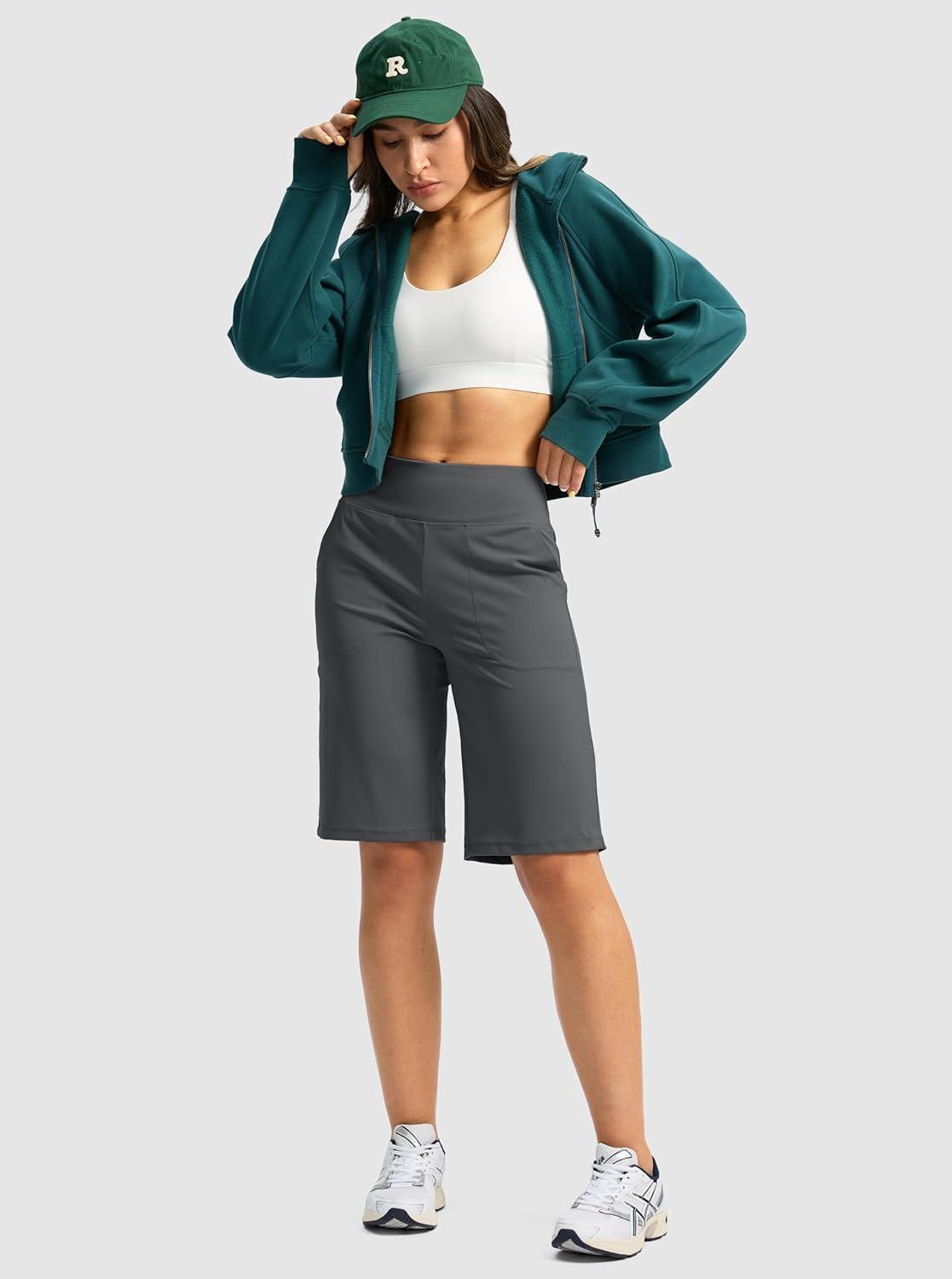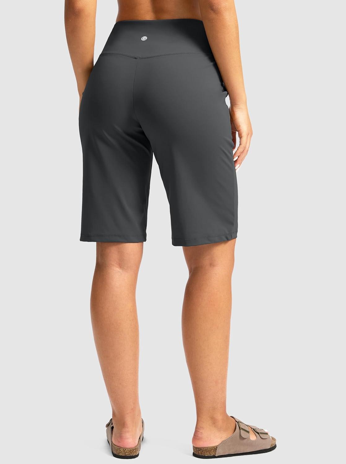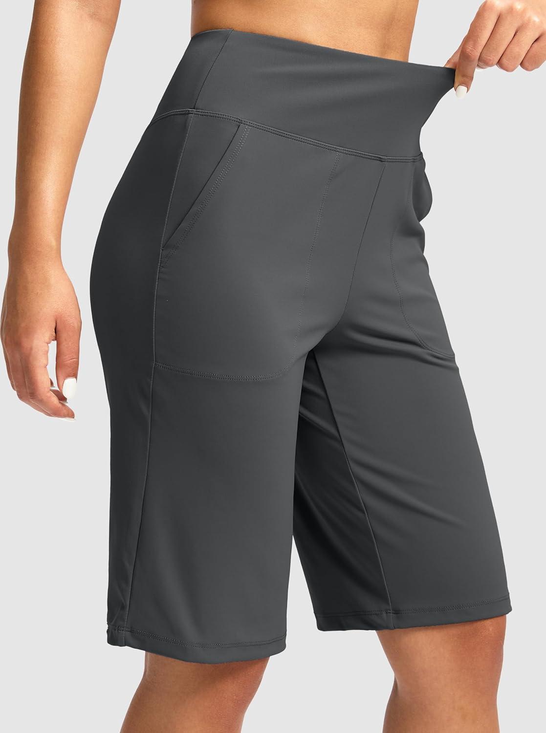 G Gradual Women’s Bermuda Shorts 12″ Knee Length with Pockets High Waisted Stretch Long Shorts for Women Casual Walking(Dark Grey)