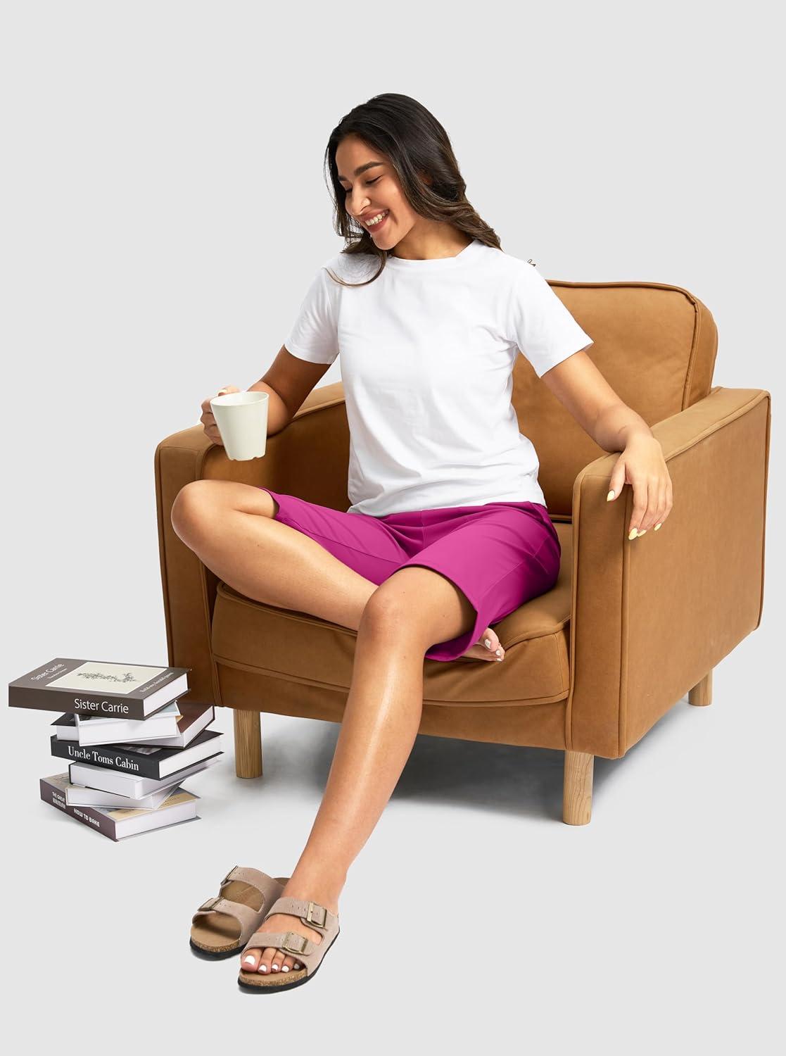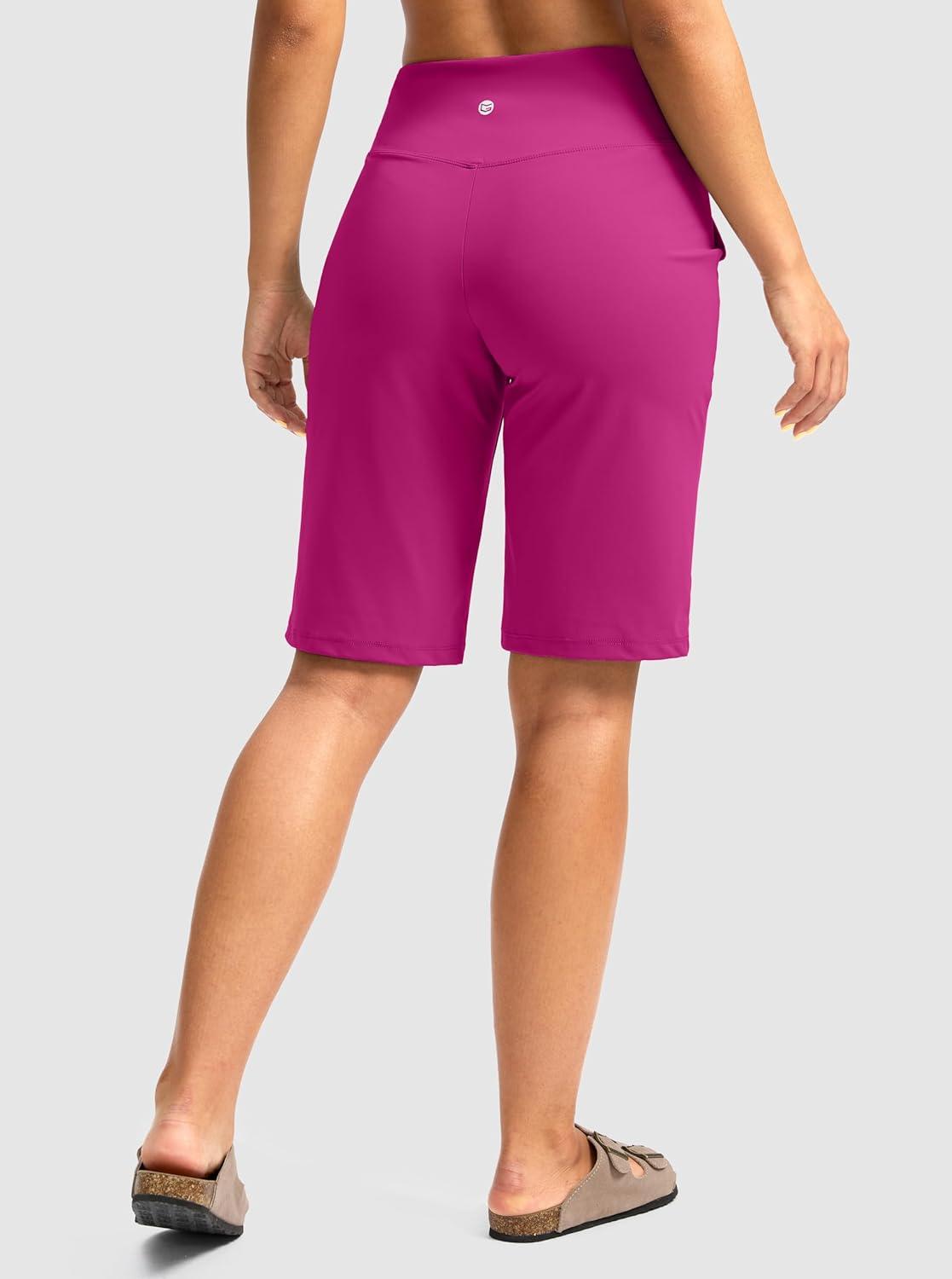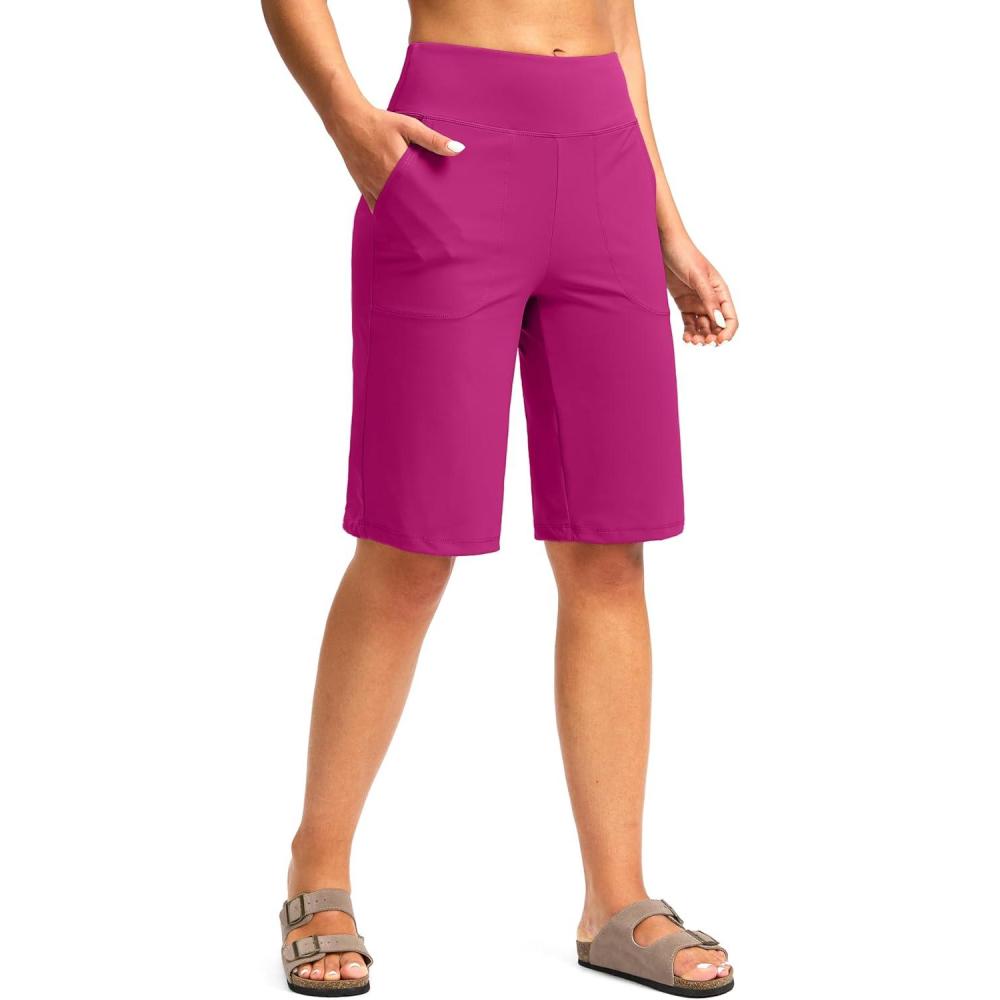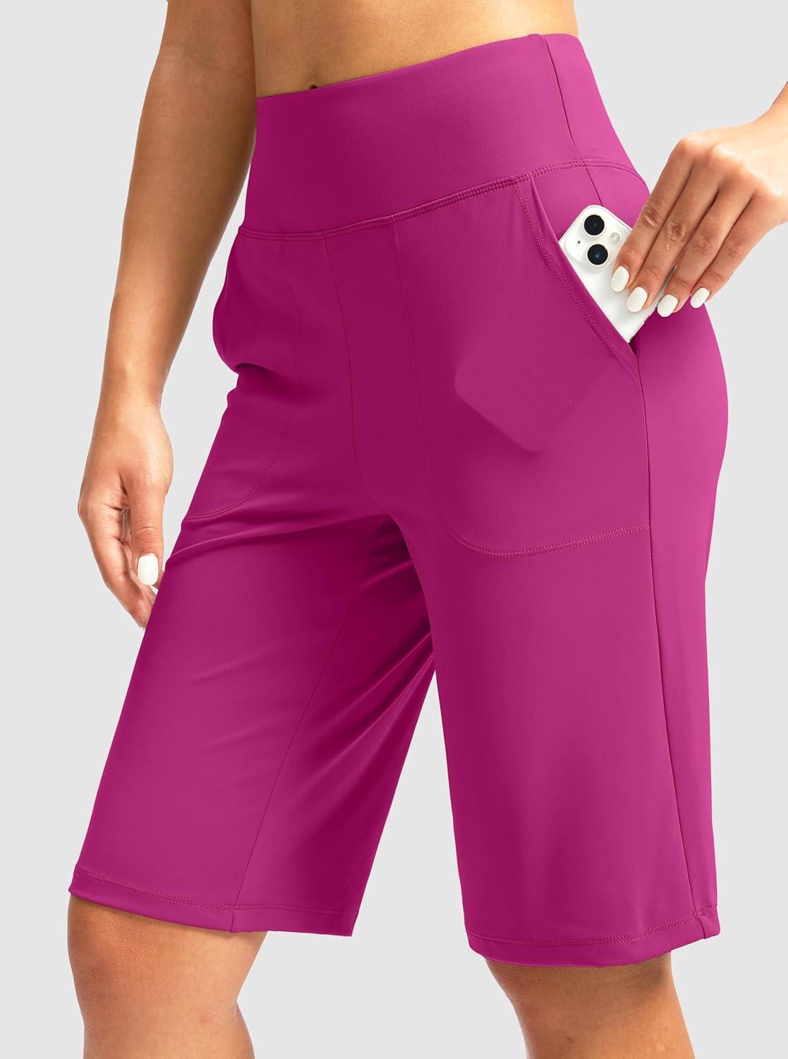 G Gradual Women’s Bermuda Shorts 12″ Knee Length with Pockets High Waisted Stretch Long Shorts for Women Casual Walking(Rose)
