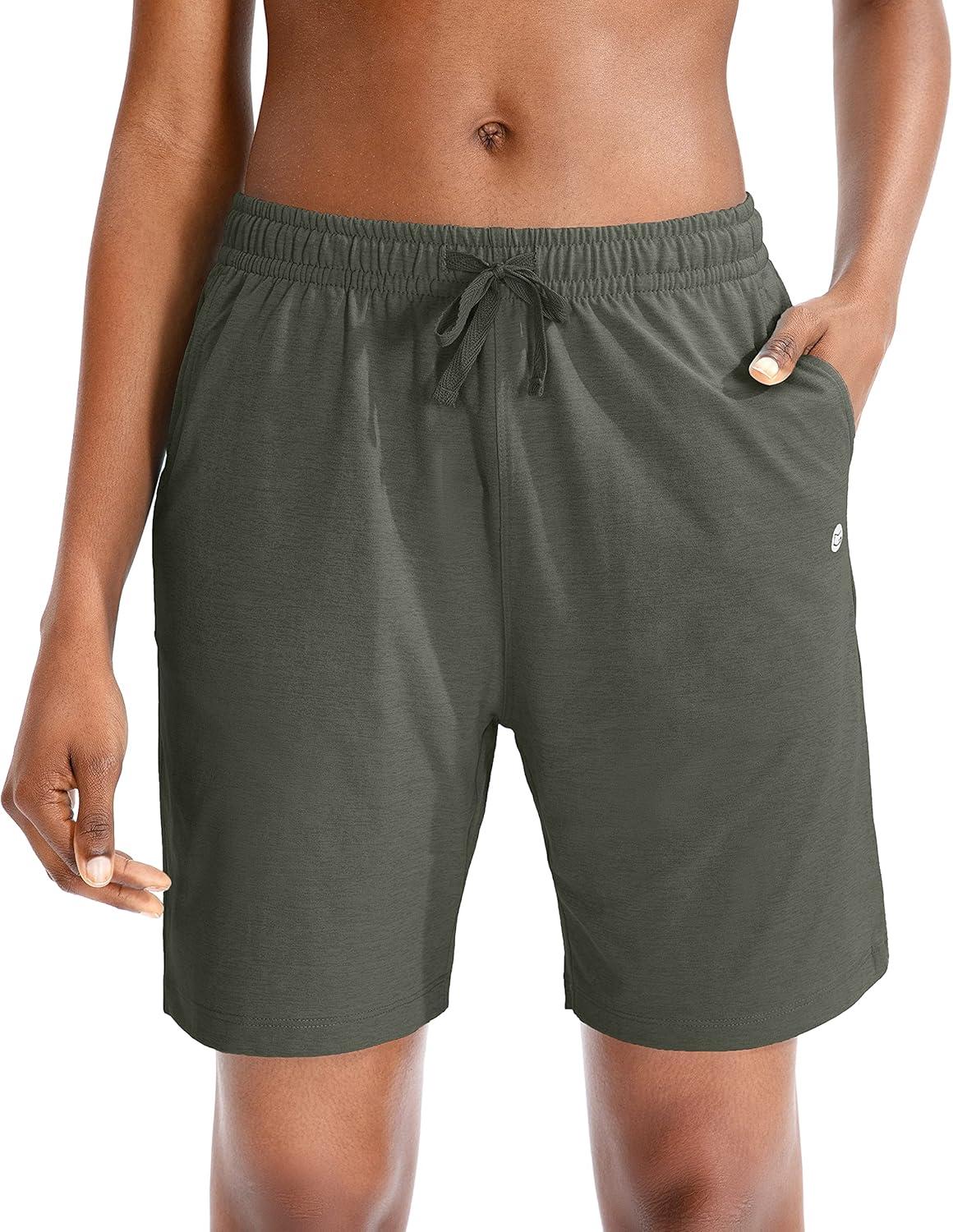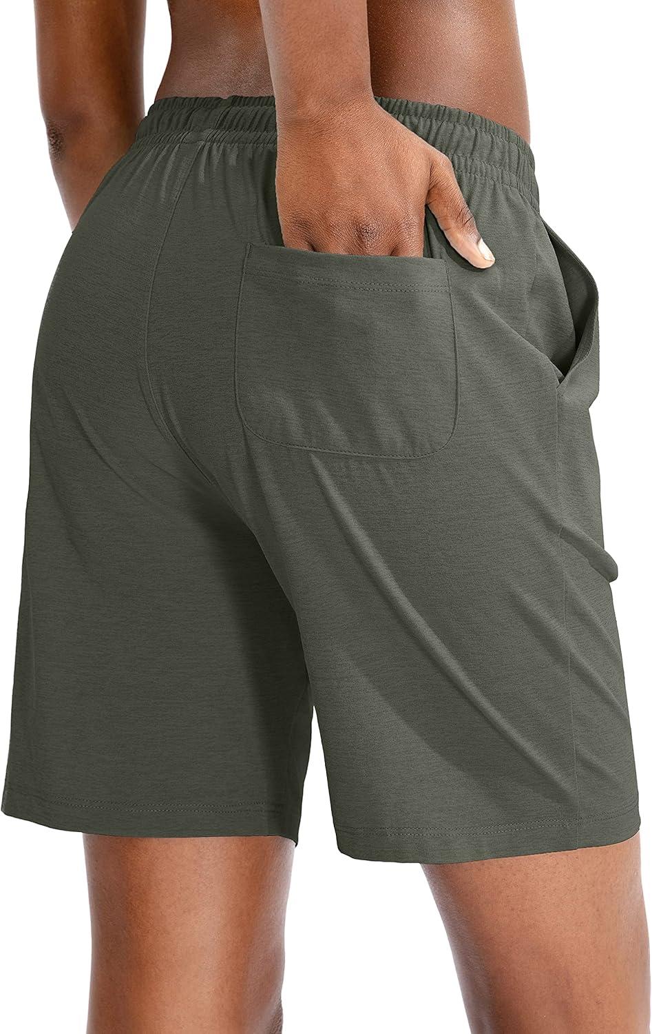 G Gradual Women’s Bermuda Shorts Jersey Shorts with Deep Pockets 7″ Long Shorts for Women Lounge Walking Athletic(Dark Khaki)