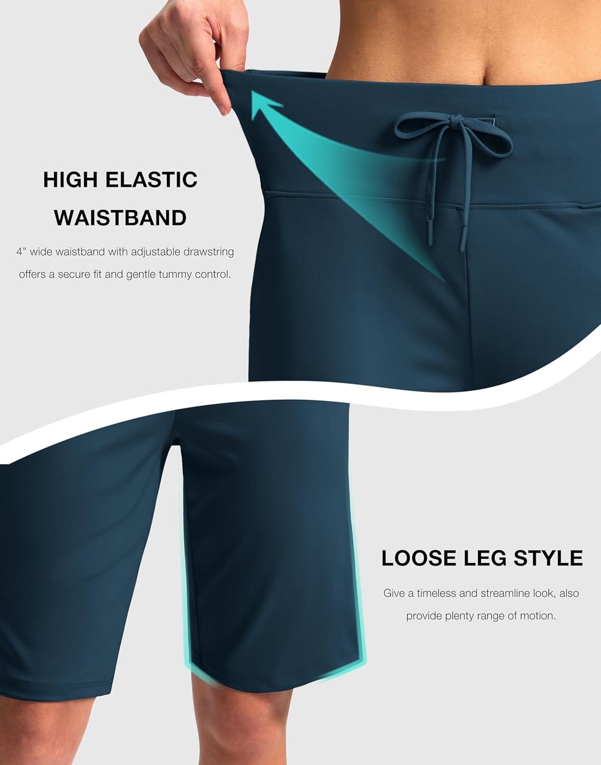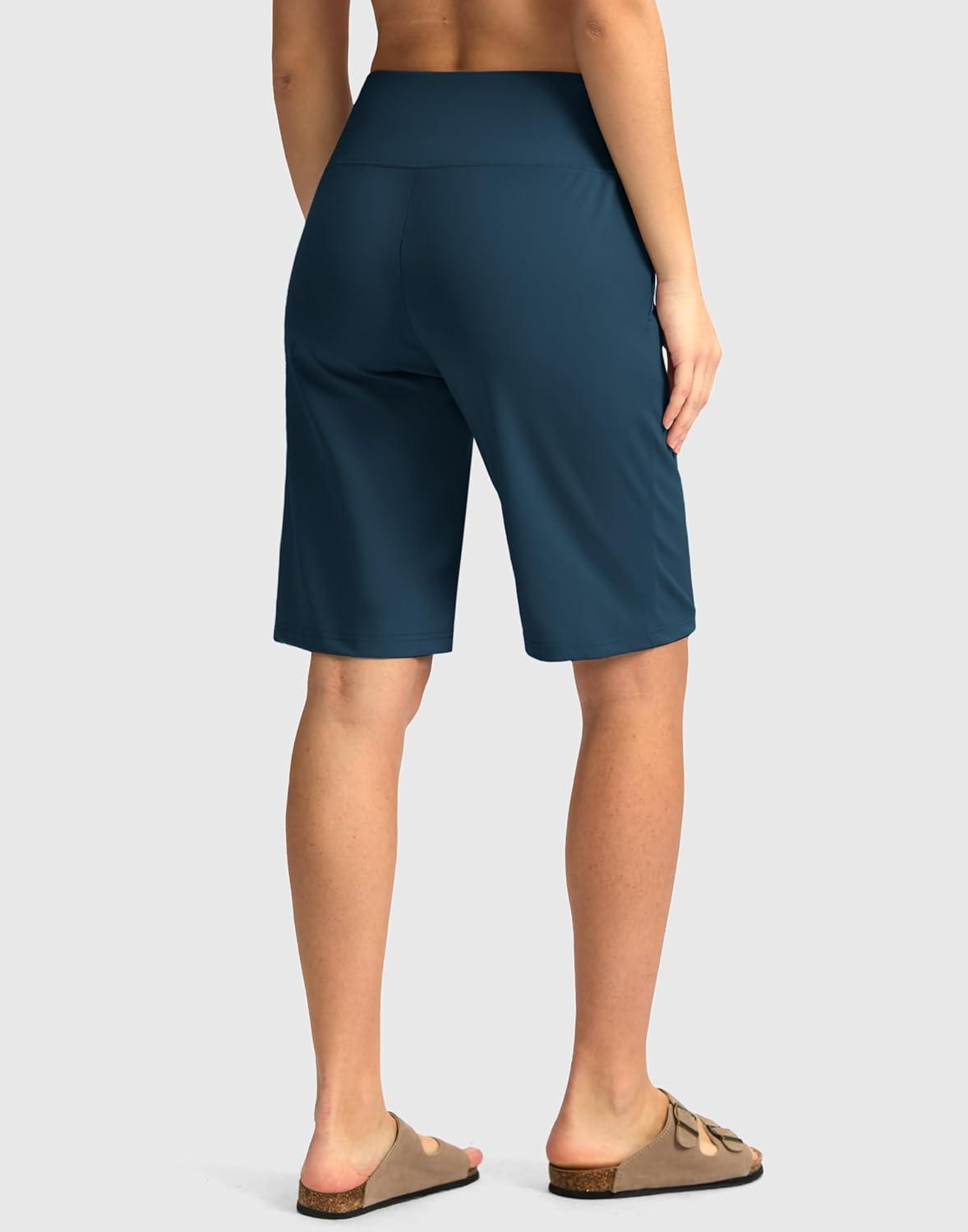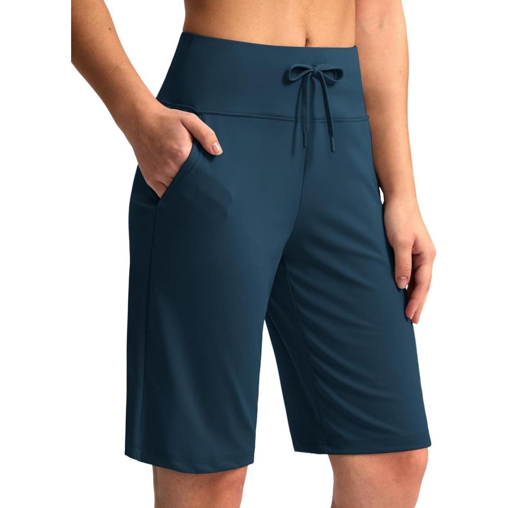 G Gradual Women’s Bermuda Shorts with Pockets 11″ Knee Length Stretch Comfy Drawstring Long Shorts for Women Summer Walking(Borealis Green)