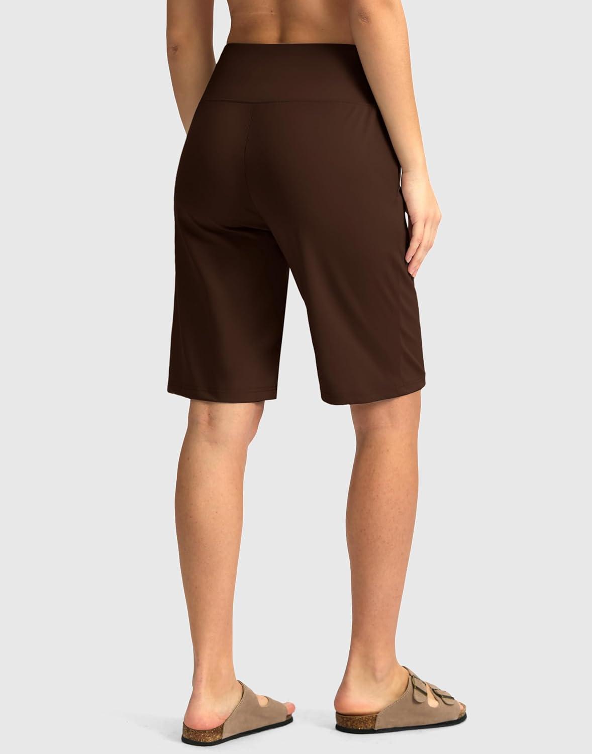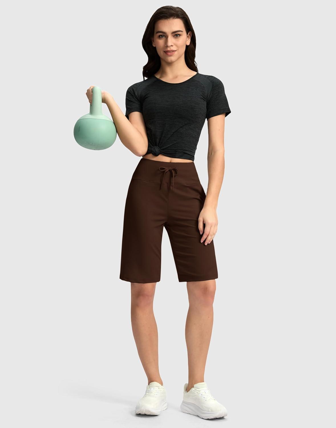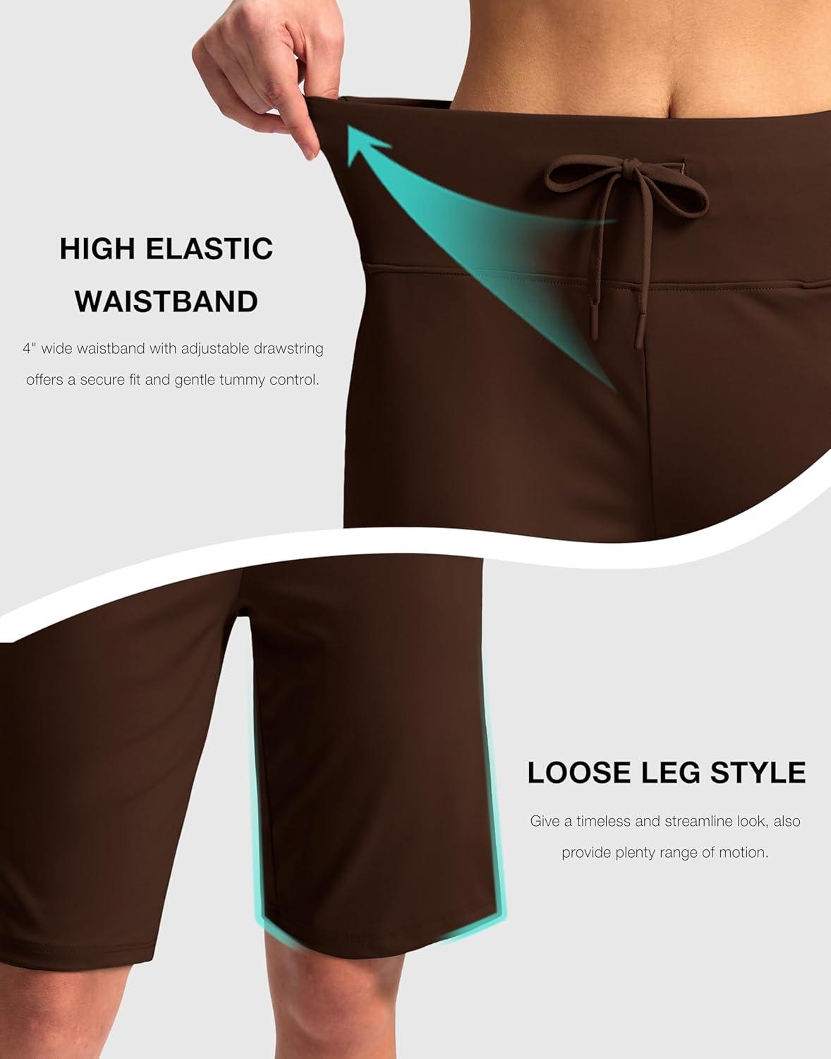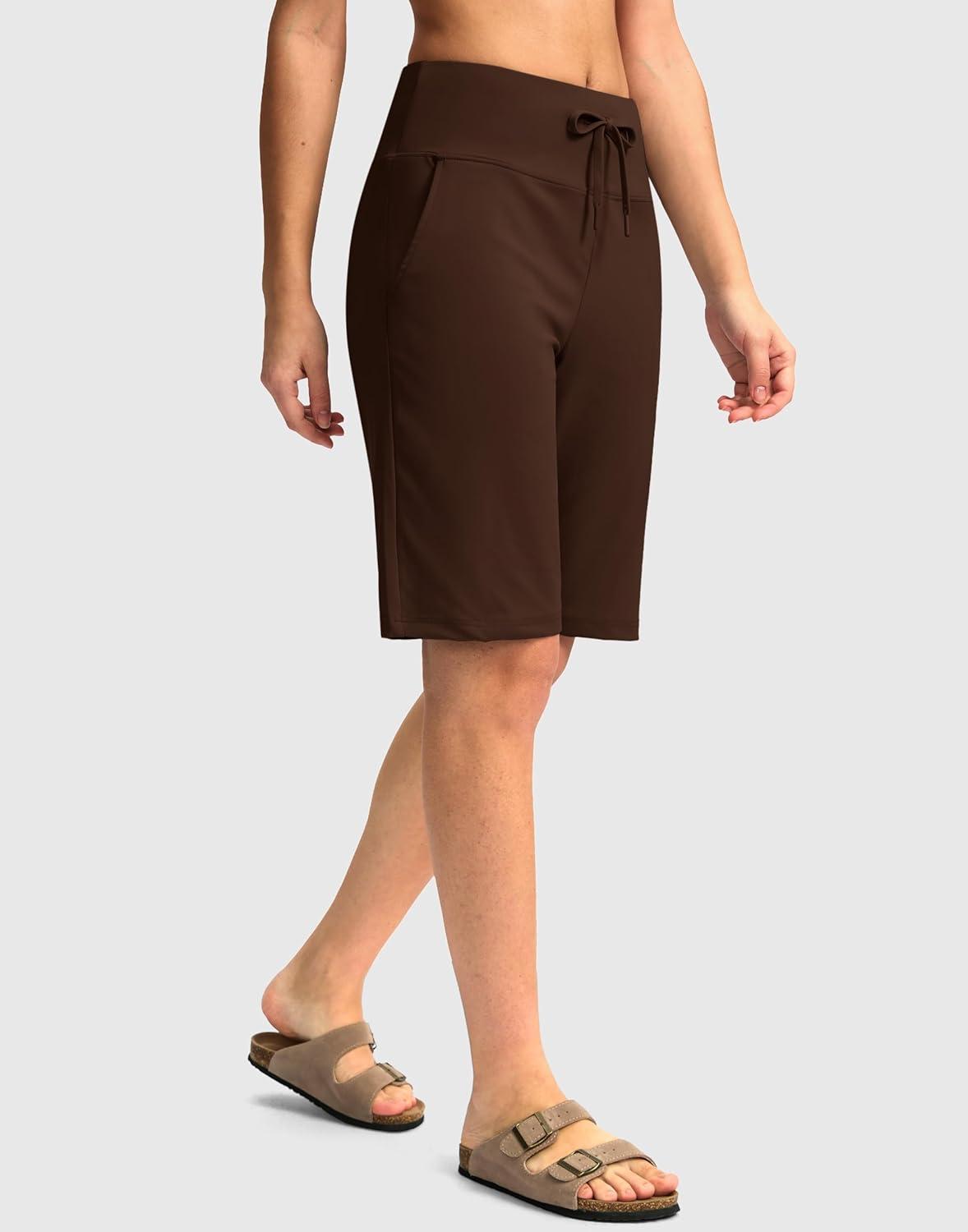 G Gradual Women’s Bermuda Shorts with Pockets 11″ Knee Length Stretch Comfy Drawstring Long Shorts for Women Summer Walking(Espresso)