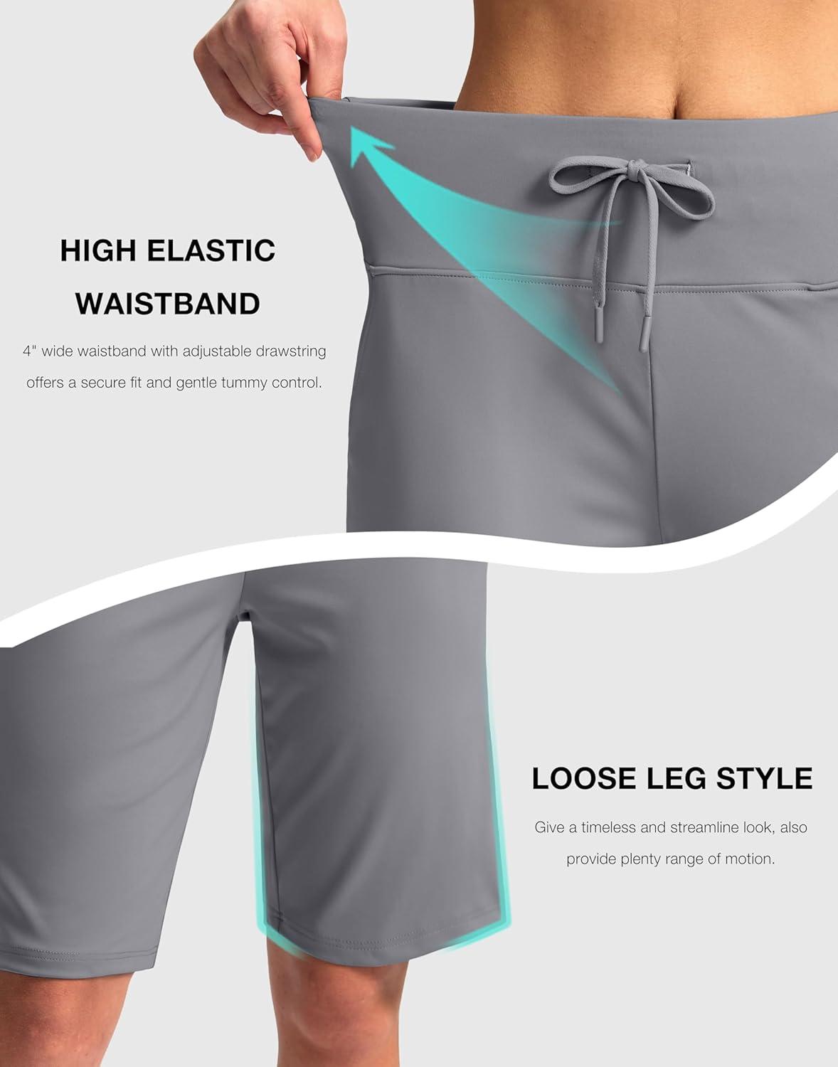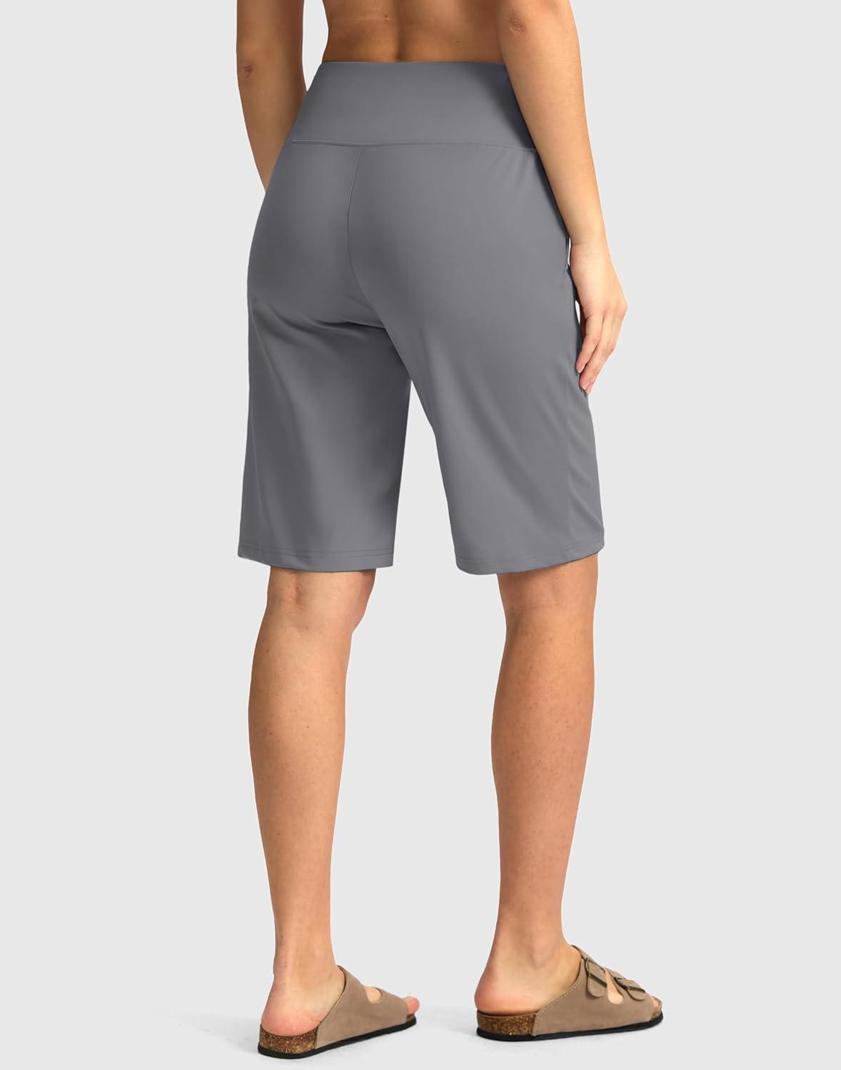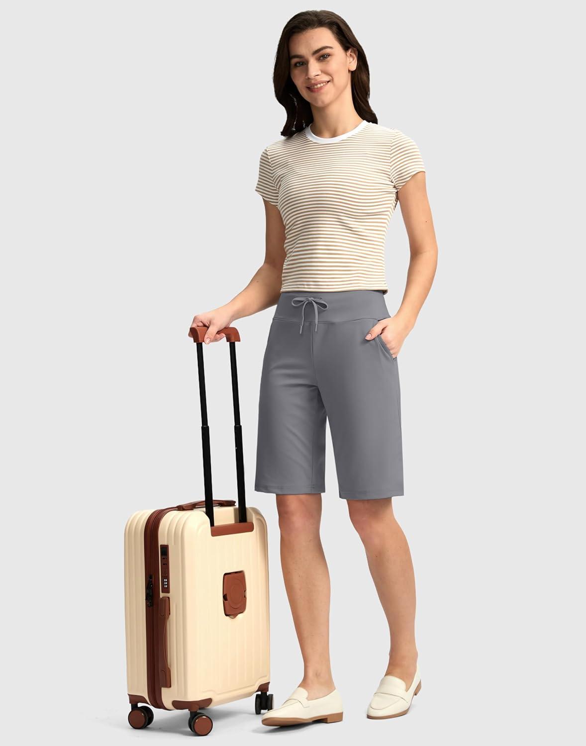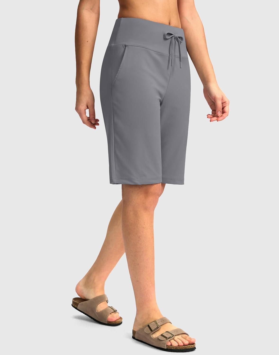 G Gradual Women's Bermuda Shorts with Pockets 11" Knee Length Stretch Comfy Drawstring Long Shorts for Women Summer Walking(Light Grey)