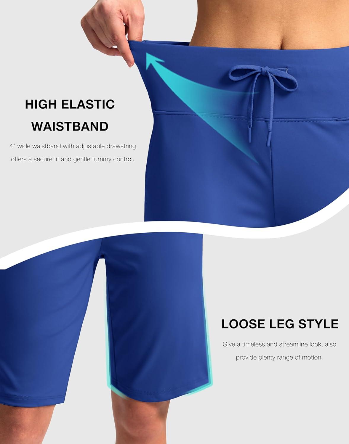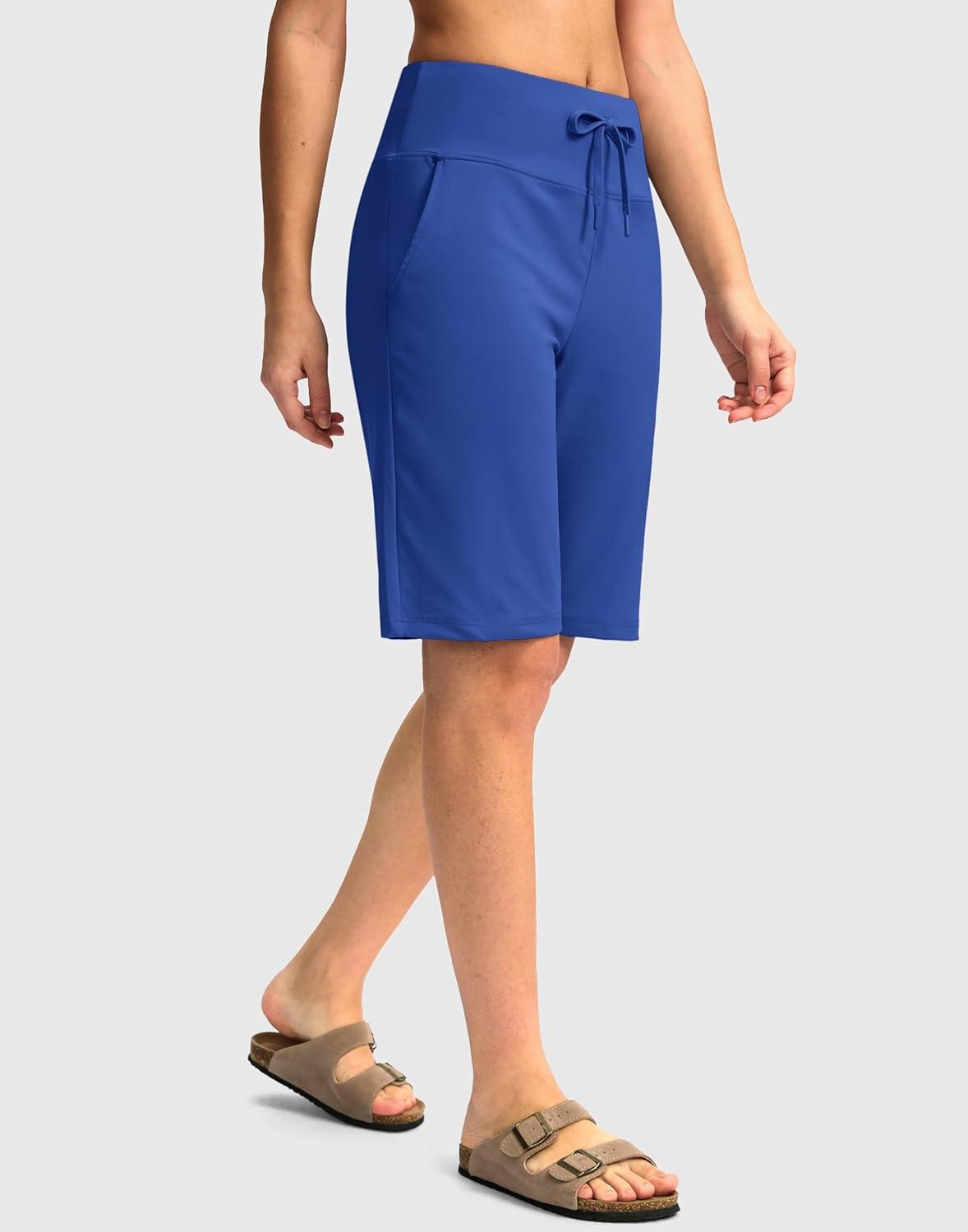 G Gradual Women's Bermuda Shorts with Pockets 11" Knee Length Stretch Comfy Drawstring Long Shorts for Women Summer Walking(Royal Blue)