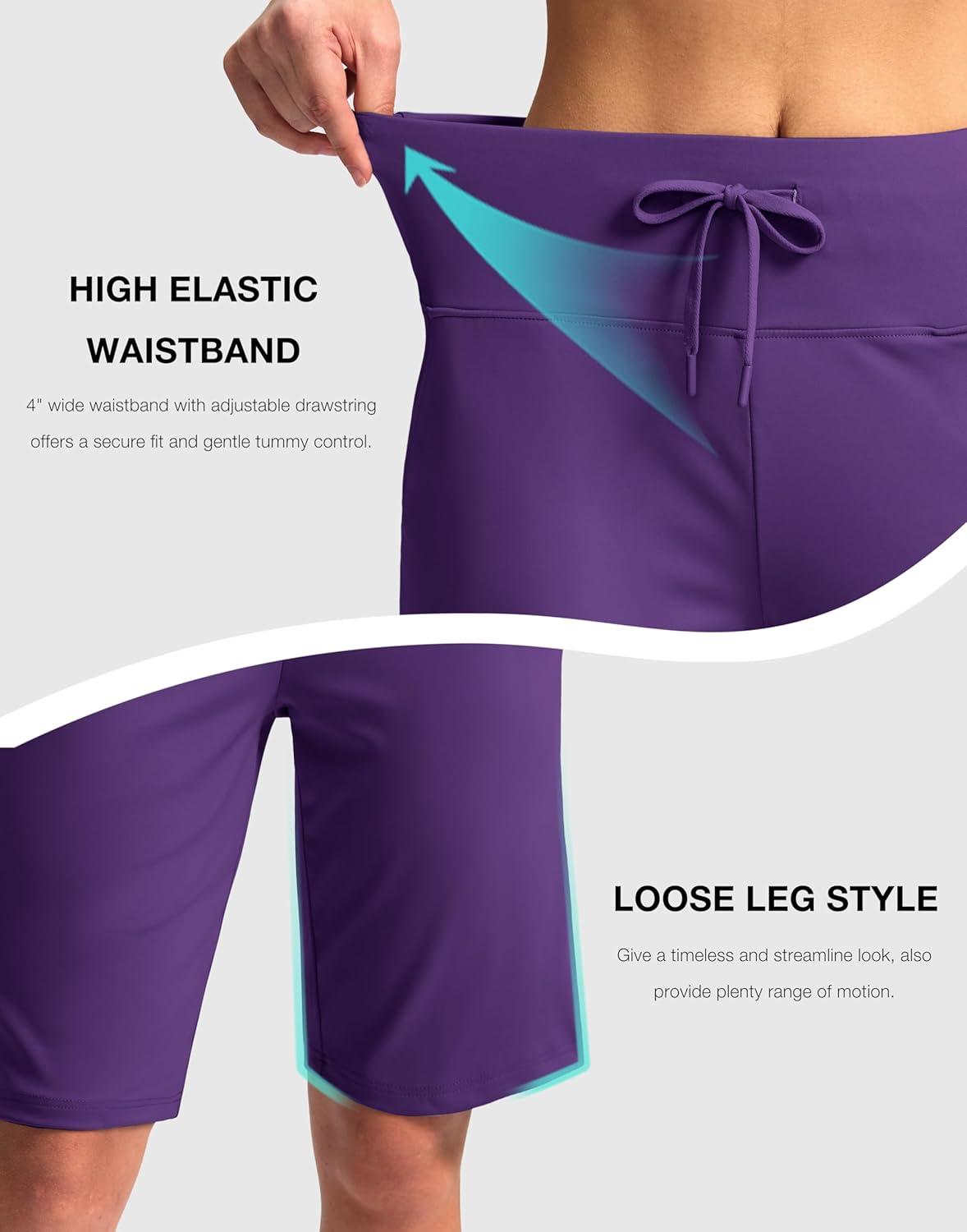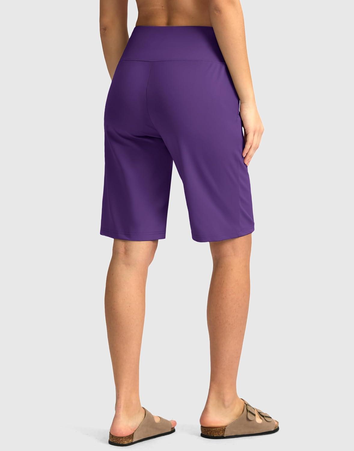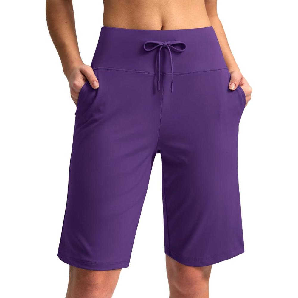 G Gradual Women’s Bermuda Shorts with Pockets 11″ Knee Length Stretch Comfy Drawstring Long Shorts for Women Summer Walking(Royal Lilac)