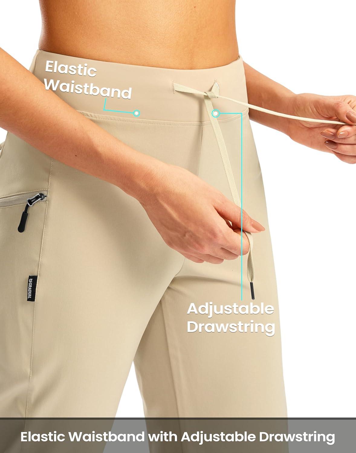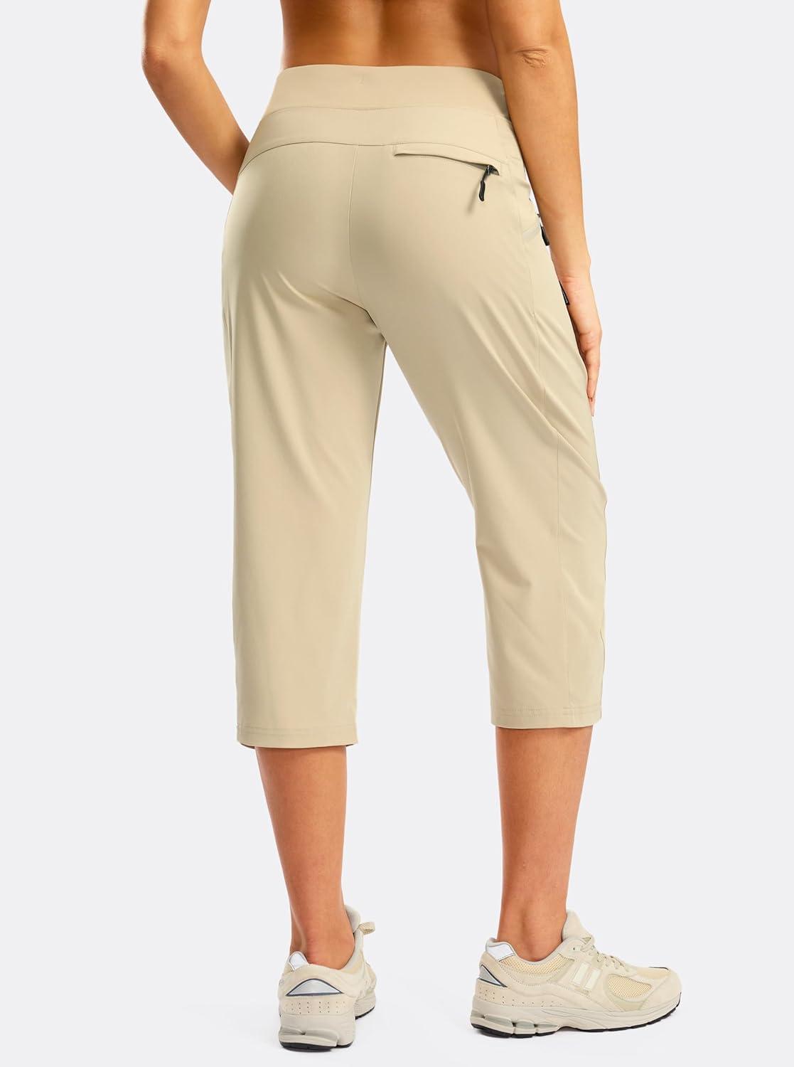 G GRADUAL Women's Capri Pants with 3 Zipper Pockets Lightweight Quick Dry Hiking Travel Capris Pants for Women Casual Summer(Khaki)