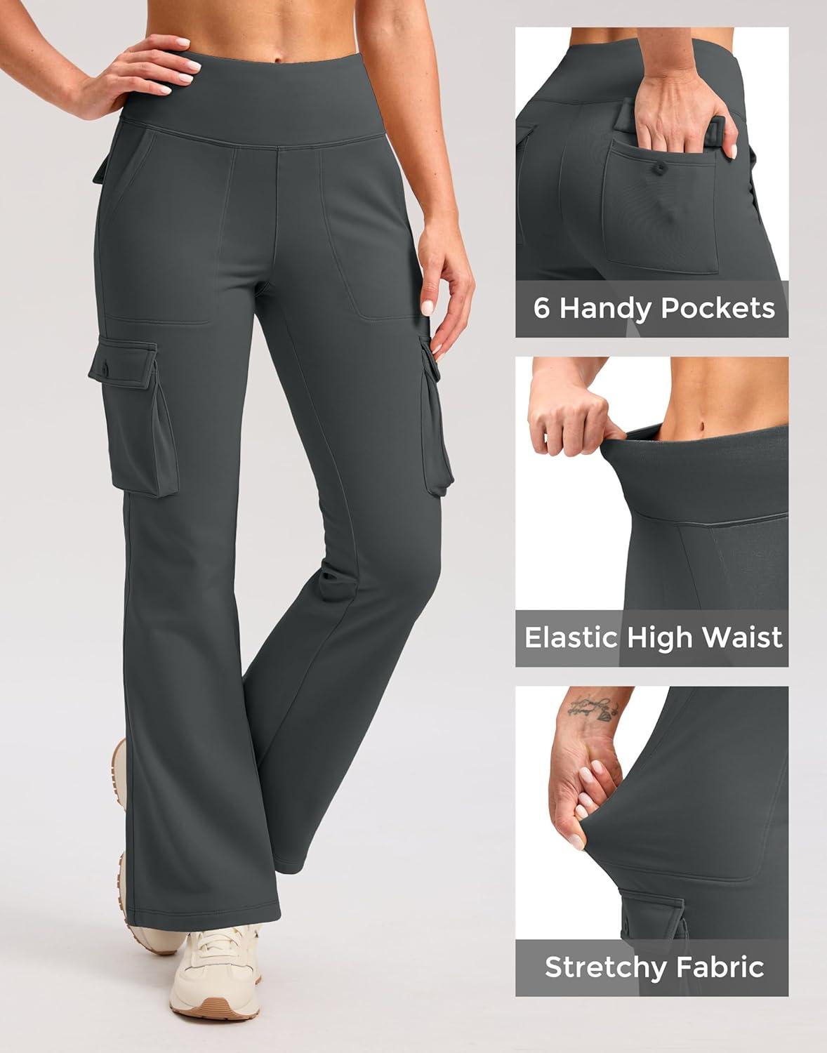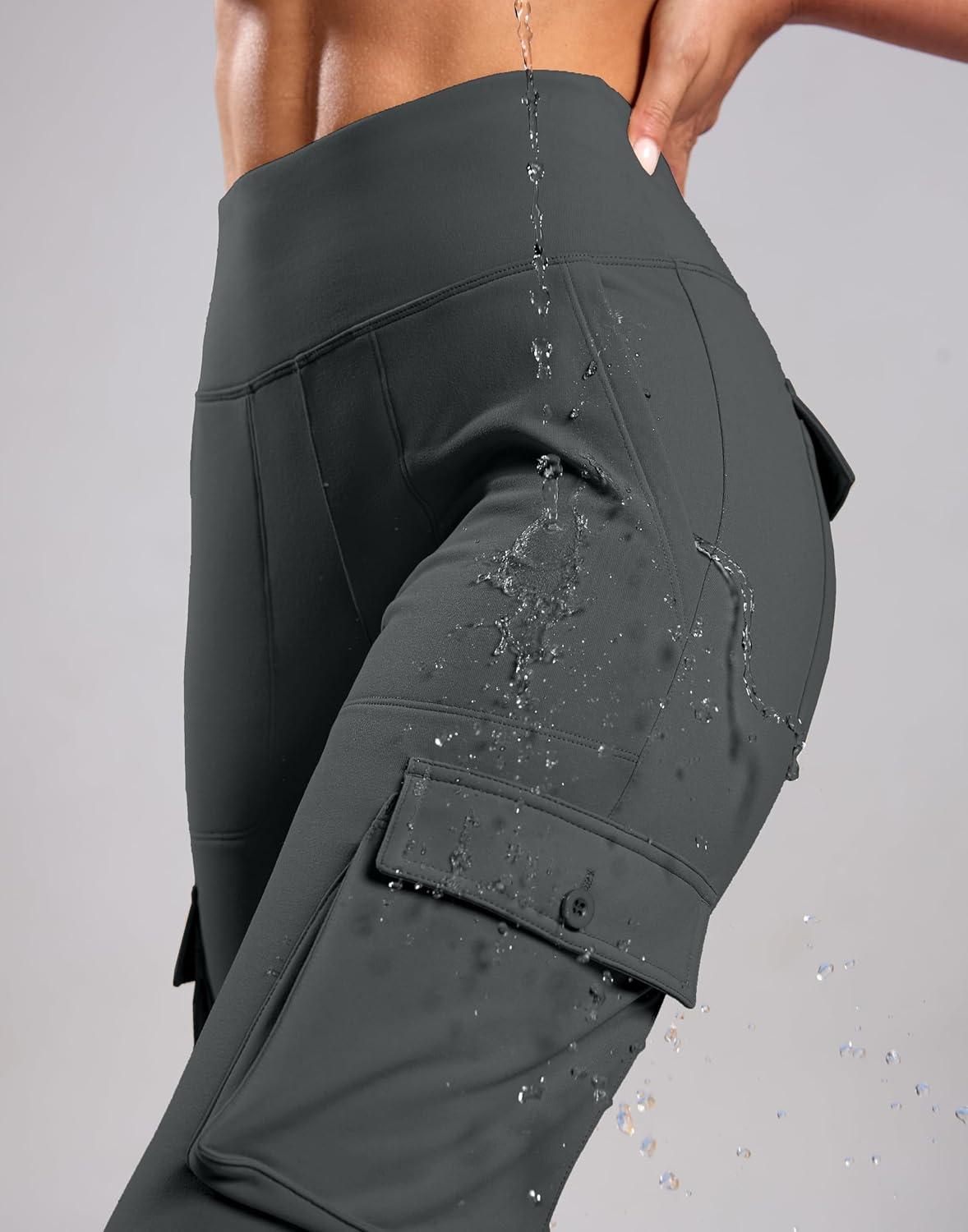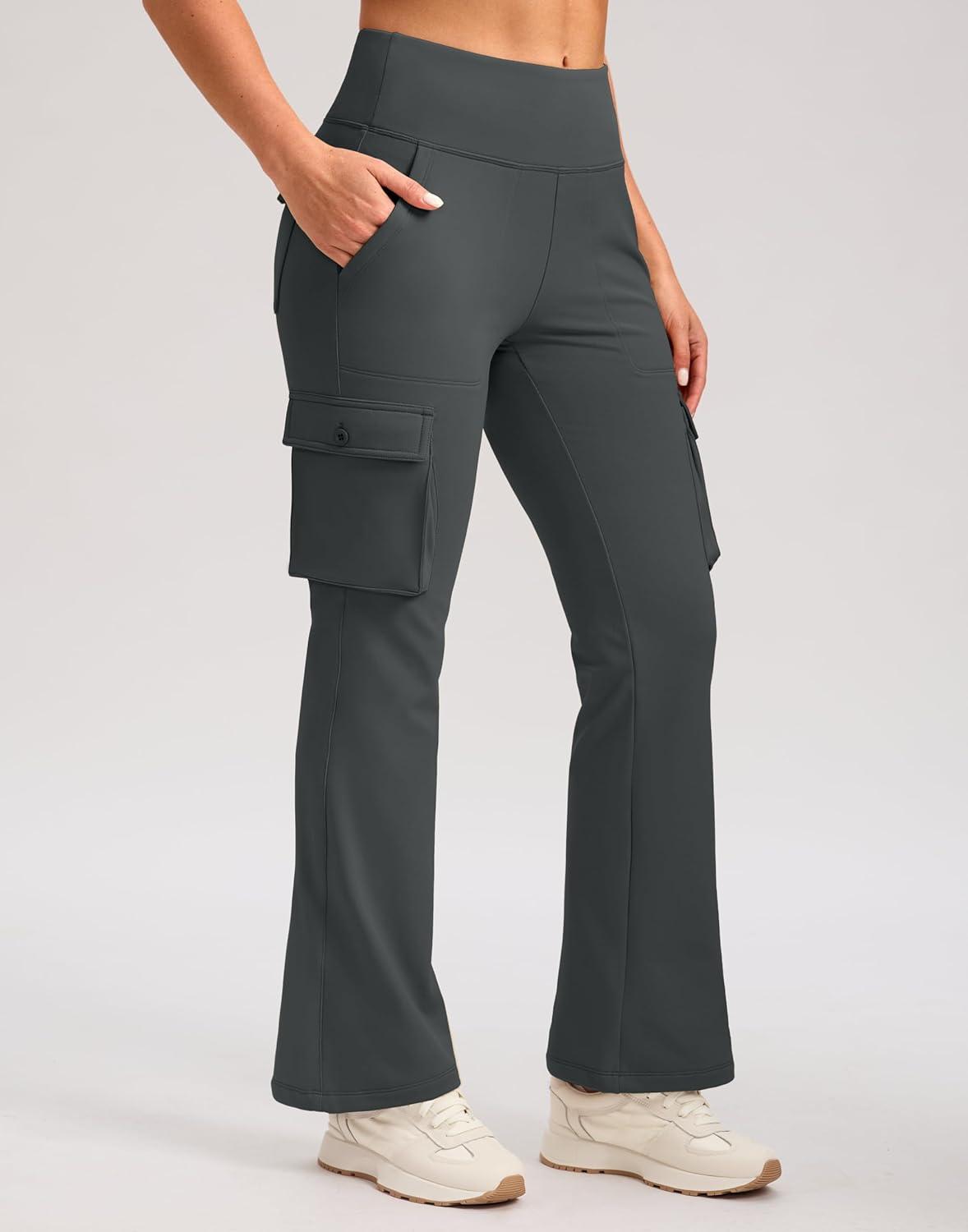 G Gradual Women's Fleece Lined Cargo Pants 6 Pockets Bootcut Water Resistant Winter Flare Leggings for Work, Hiking, Travel(Dark Grey)