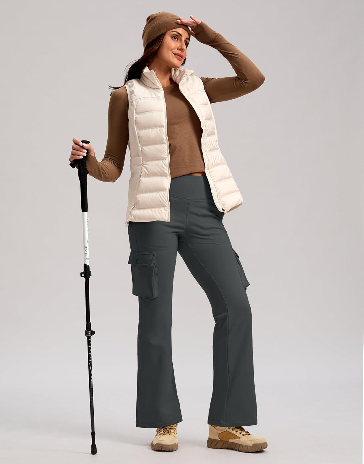 G Gradual Women’s Fleece Lined Cargo Pants 6 Pockets Bootcut Water Resistant Winter Flare Leggings for Work, Hiking, Travel(Dark Grey)