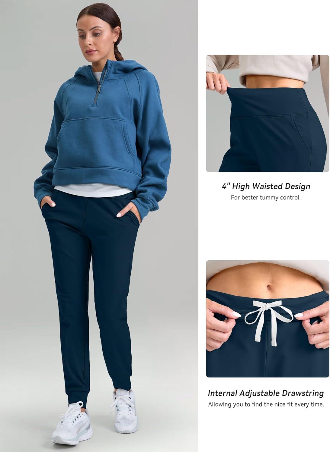 G Gradual Women’s Fleece Lined Joggers High Waisted Water Resistant Thermal Hiking Pants Cold Weather Sweatpants with Pockets(Blue)