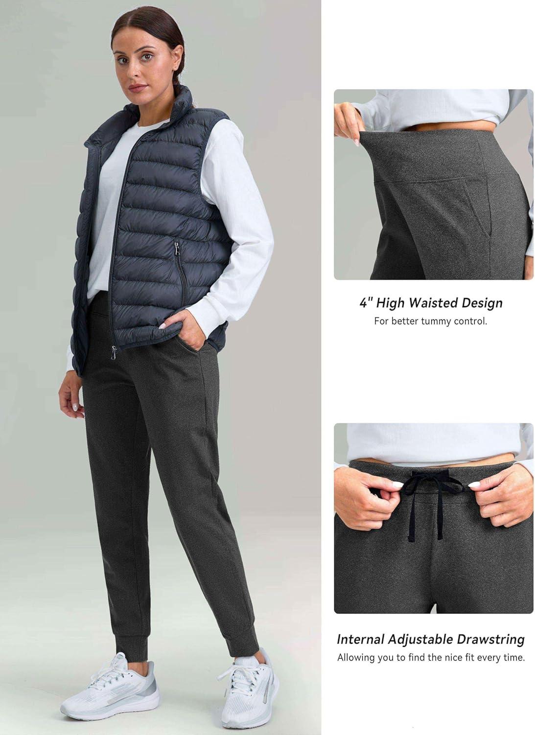 G Gradual Women’s Fleece Lined Joggers High Waisted Water Resistant Thermal Hiking Pants Cold Weather Sweatpants with Pockets(Charcoal)
