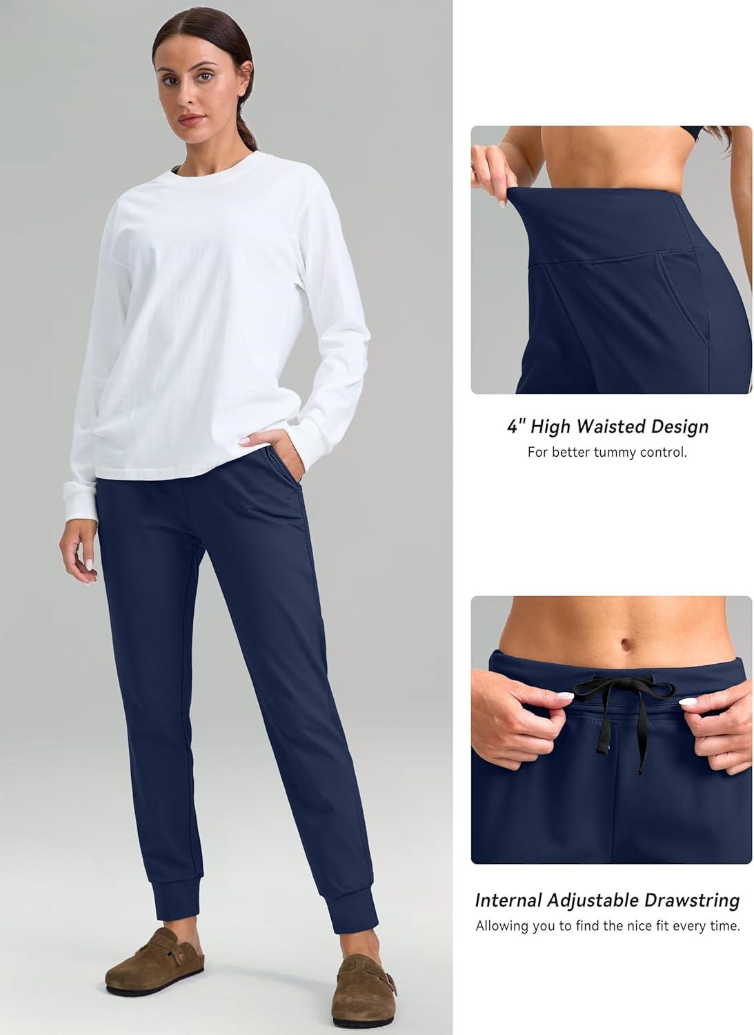 G Gradual Women’s Fleece Lined Joggers High Waisted Water Resistant Thermal Hiking Pants Cold Weather Sweatpants with Pockets(Navy)
