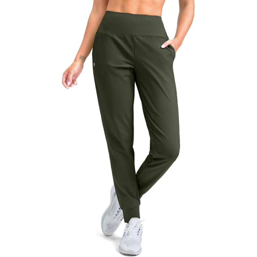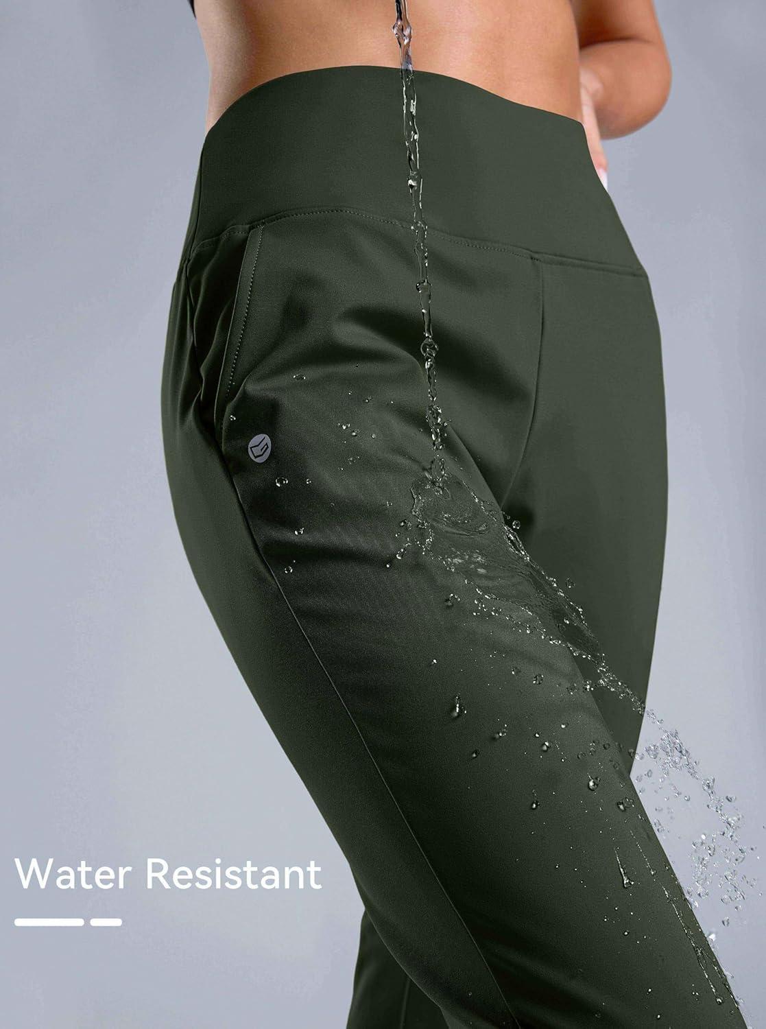 G Gradual Women’s Fleece Lined Joggers High Waisted Water Resistant Thermal Hiking Pants Cold Weather Sweatpants with Pockets(Olive)