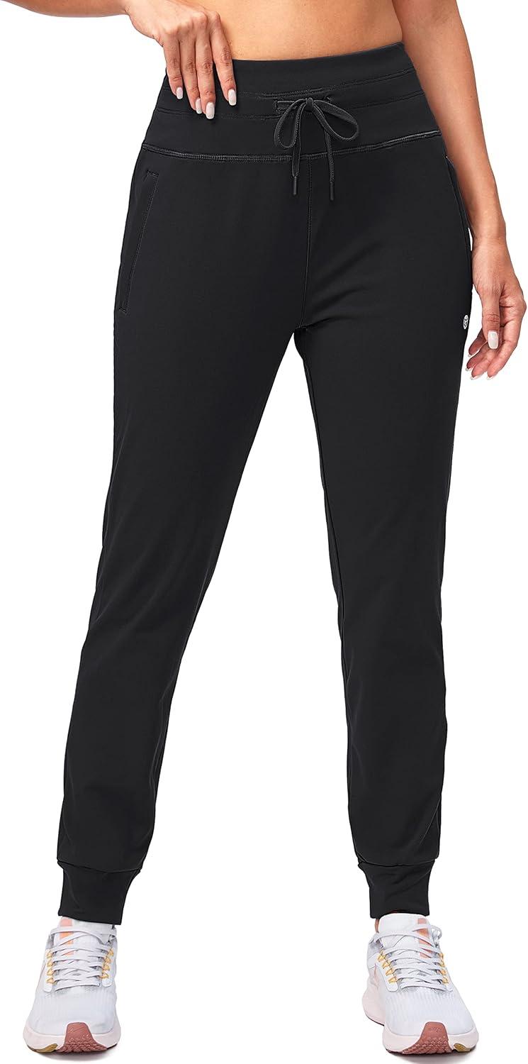 G Gradual Women’s Fleece Lined Joggers High Waisted Water Resistant Thermal Winter Sweatpants Running Hiking Pockets(Black)