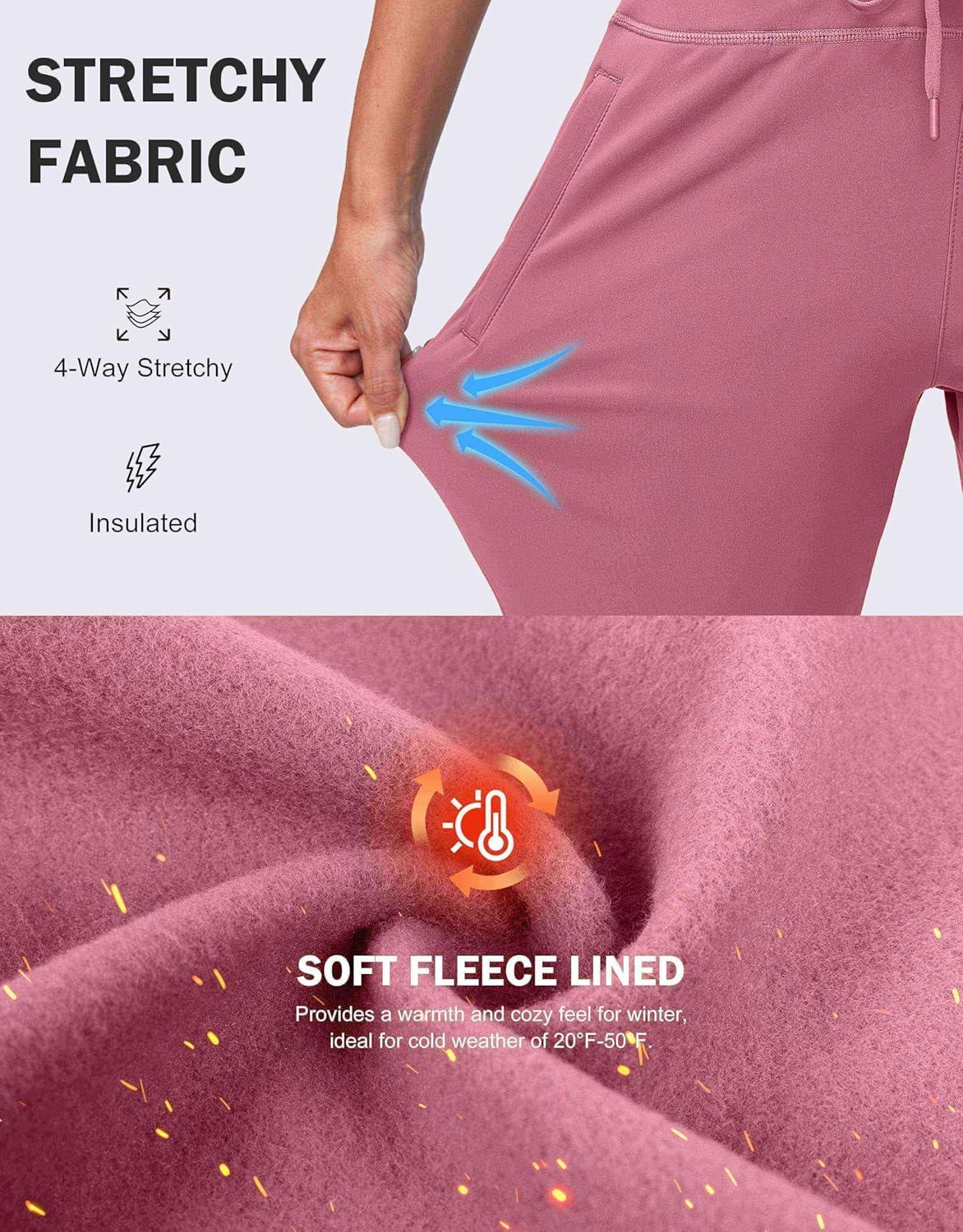 G Gradual Women's Fleece Lined Joggers High Waisted Water Resistant Thermal Winter Sweatpants Running Hiking Pockets(Briar Rose)