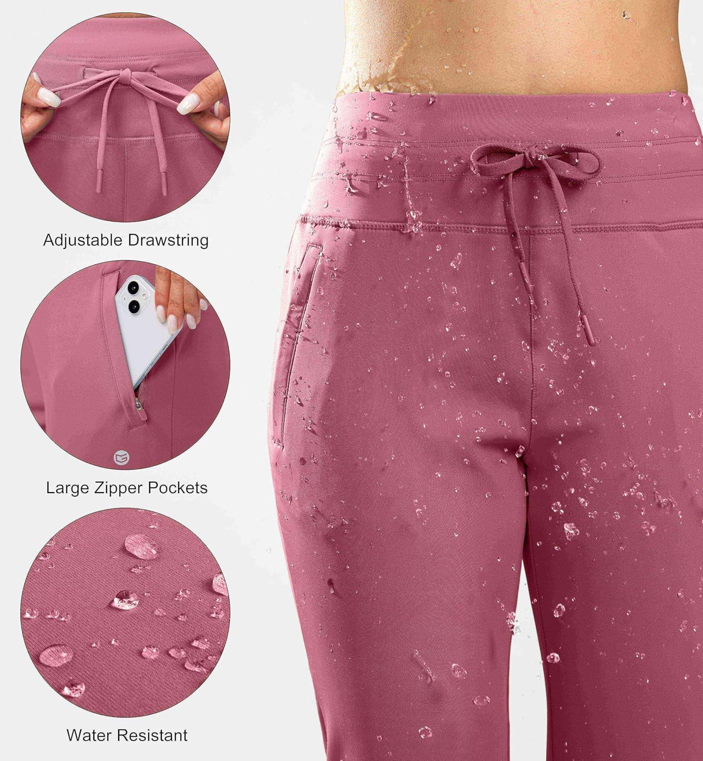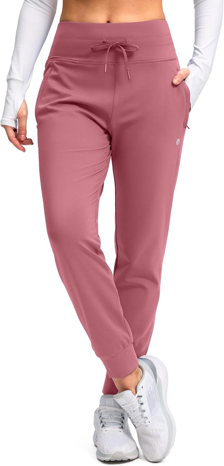 G Gradual Women’s Fleece Lined Joggers High Waisted Water Resistant Thermal Winter Sweatpants Running Hiking Pockets(Briar Rose)