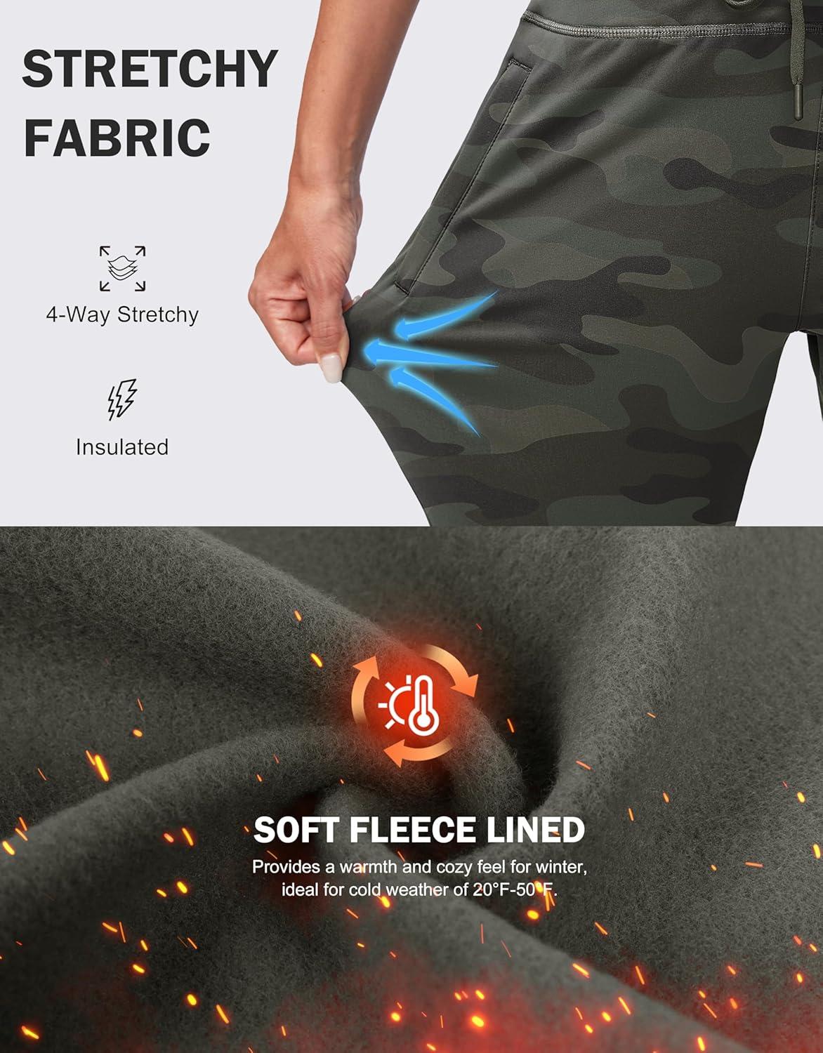 imageG Gradual Womens Fleece Lined Joggers High Waisted Water Resistant Thermal Winter Sweatpants Running Hiking PocketsGreen Camo