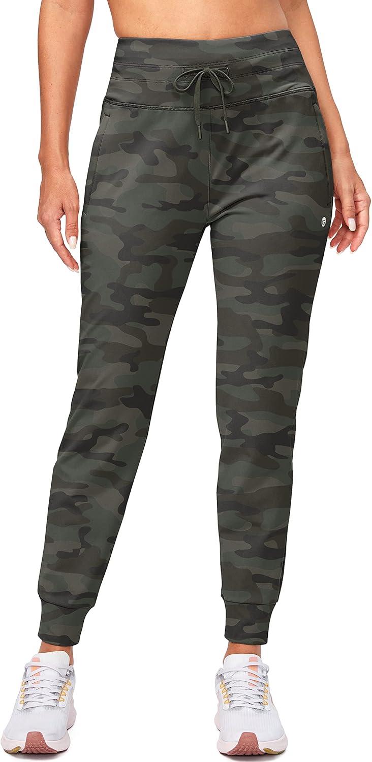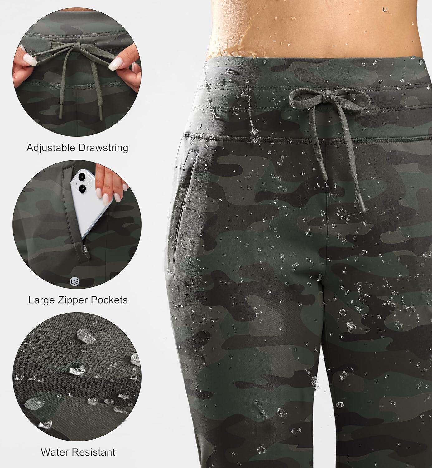 G Gradual Women’s Fleece Lined Joggers High Waisted Water Resistant Thermal Winter Sweatpants Running Hiking Pockets(Green Camo)