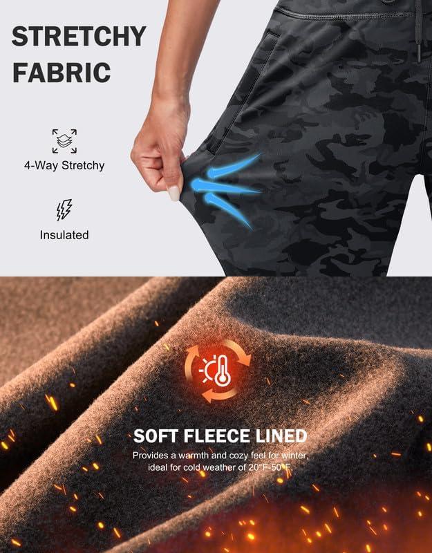 G Gradual Women's Fleece Lined Joggers High Waisted Water Resistant Thermal Winter Sweatpants Running Hiking Pockets(Grey Camo)