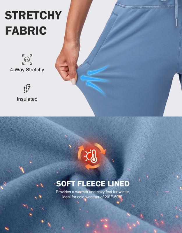 G Gradual Women's Fleece Lined Joggers High Waisted Water Resistant Thermal Winter Sweatpants Running Hiking Pockets(Slate Blue)