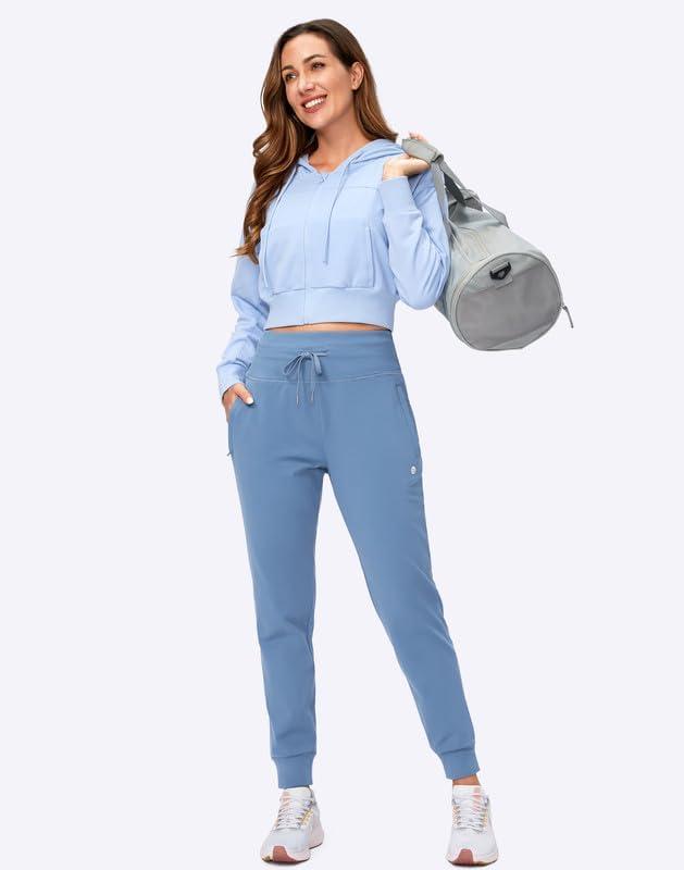 G Gradual Women’s Fleece Lined Joggers High Waisted Water Resistant Thermal Winter Sweatpants Running Hiking Pockets(Slate Blue)