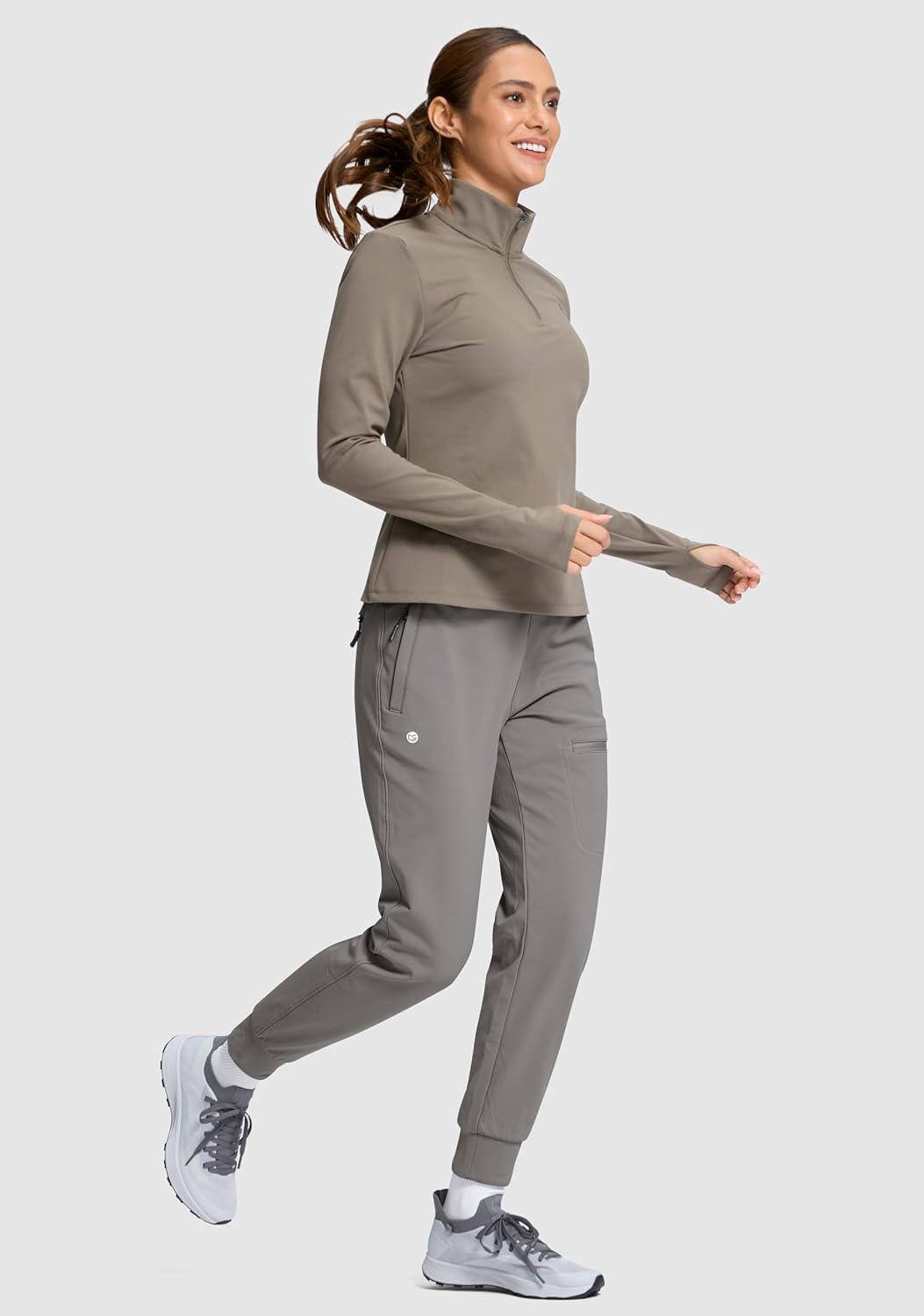 G Gradual Women’s Fleece Lined Joggers Hiking Pants 4 Zipper Pockets High Waisted Water Resistant Winter Running Sweatpants(Light Khaki)