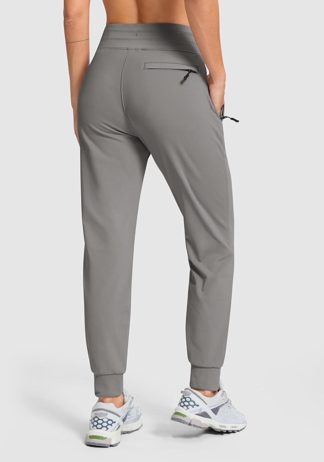 imageG Gradual Womens Fleece Lined Joggers Hiking Pants 4 Zipper Pockets High Waisted Water Resistant Winter Running SweatpantsLight Grey