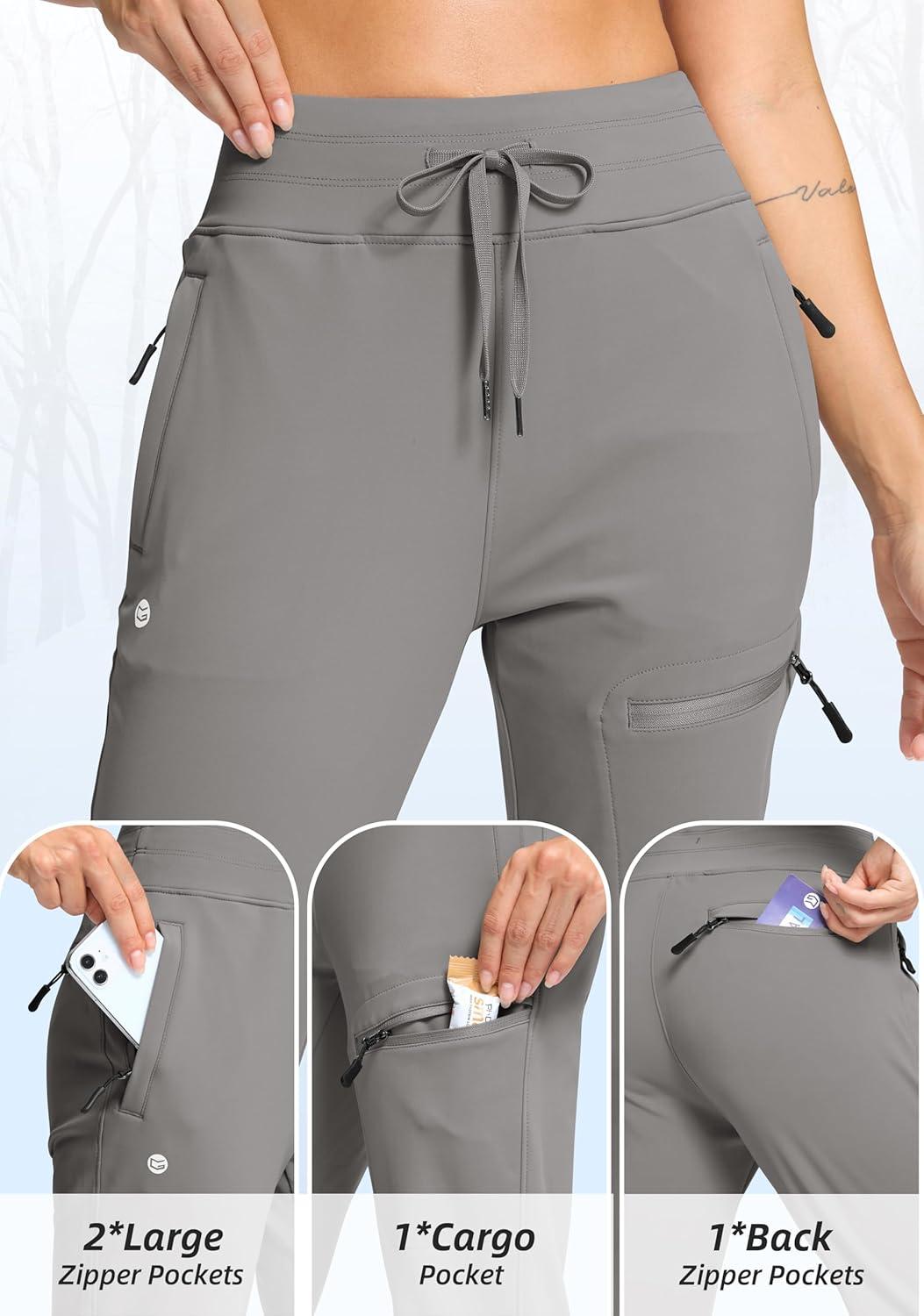 G Gradual Women's Fleece Lined Joggers Hiking Pants 4 Zipper Pockets High Waisted Water Resistant Winter Running Sweatpants(Light Grey)