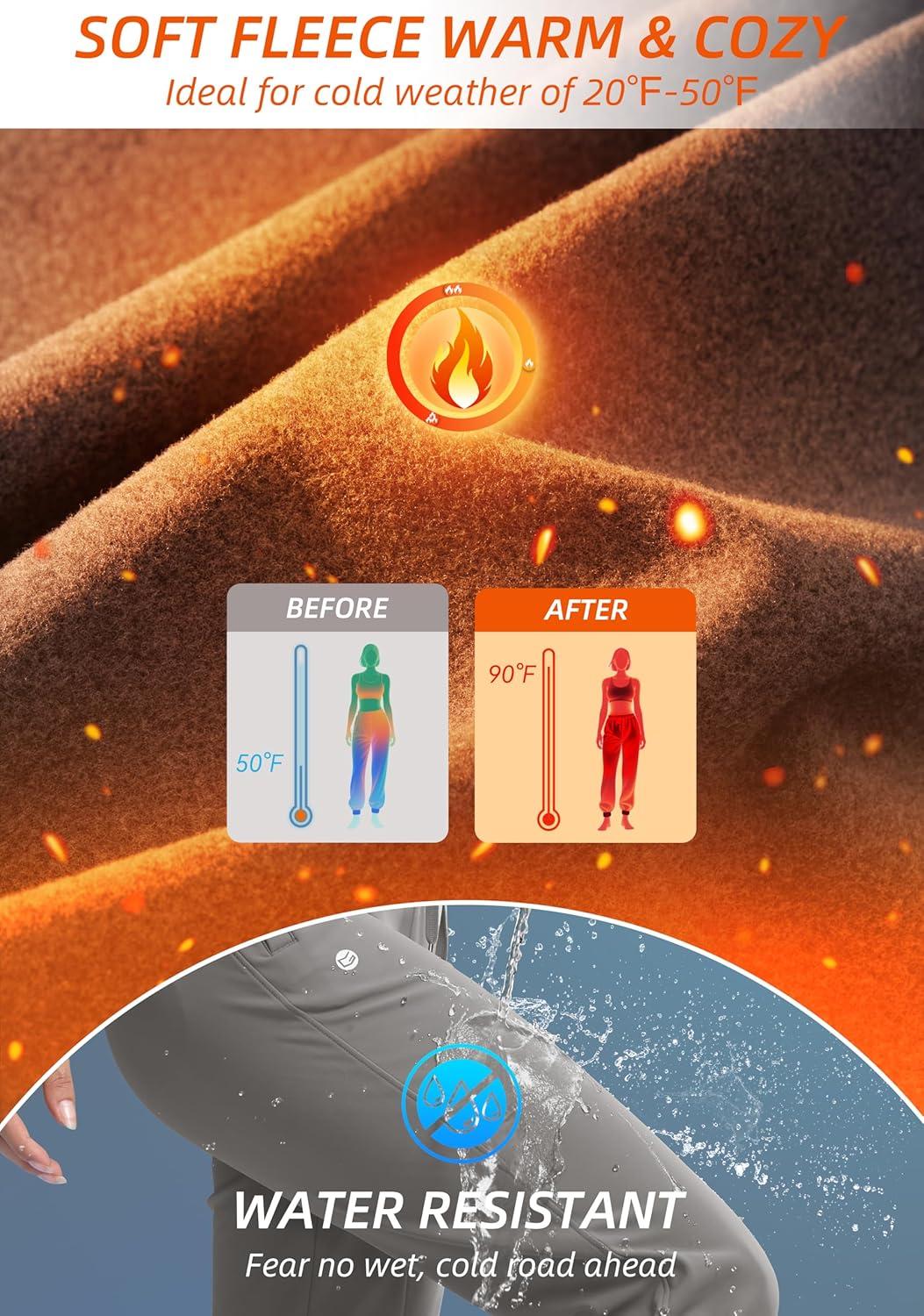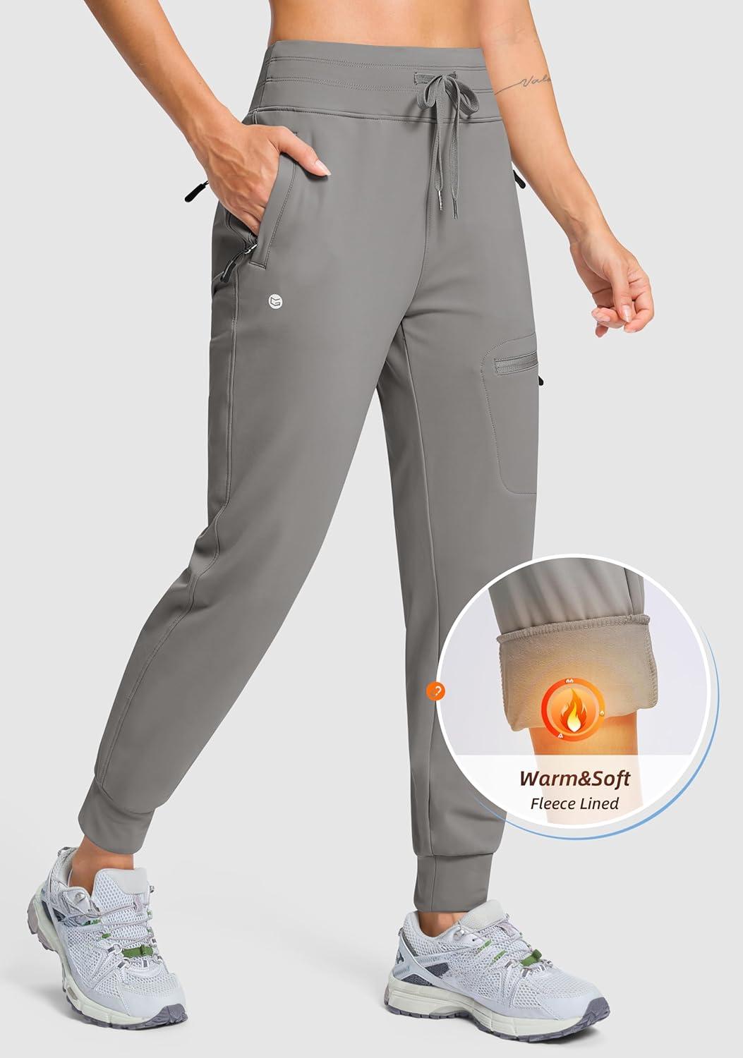 G Gradual Women’s Fleece Lined Joggers Hiking Pants 4 Zipper Pockets High Waisted Water Resistant Winter Running Sweatpants(Dark Grey)