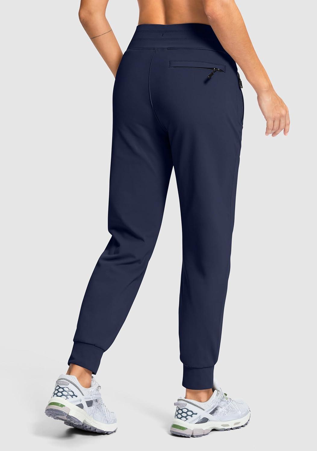 G Gradual Women's Fleece Lined Joggers Hiking Pants 4 Zipper Pockets High Waisted Water Resistant Winter Running Sweatpants(Navy)