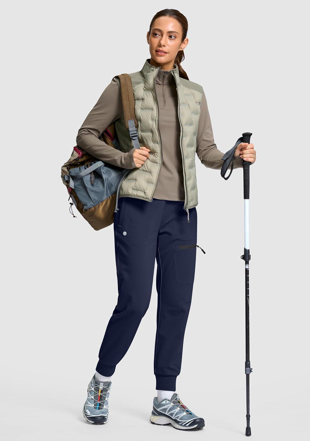 G Gradual Women’s Fleece Lined Joggers Hiking Pants 4 Zipper Pockets High Waisted Water Resistant Winter Running Sweatpants(Navy)