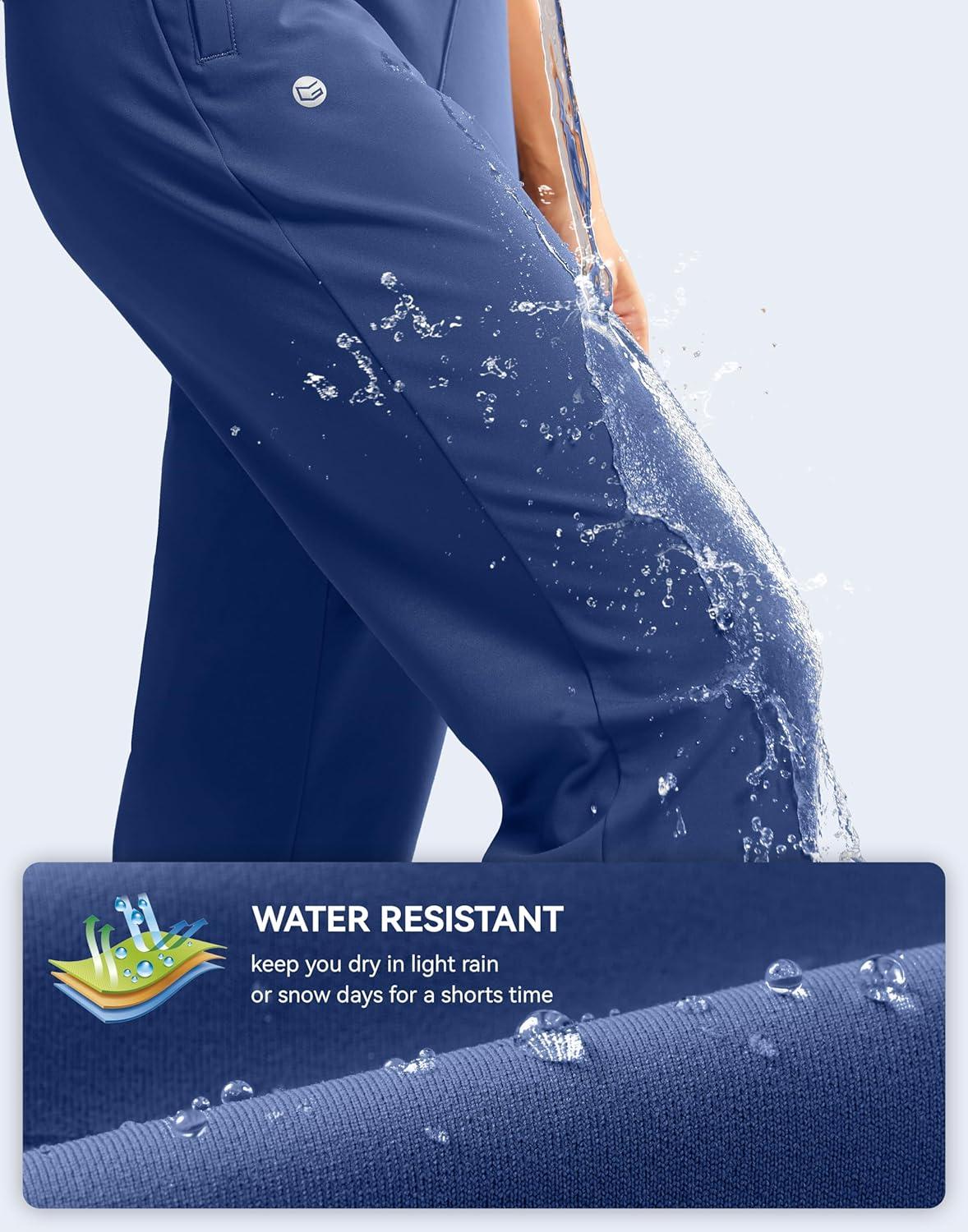 G Gradual Women's Fleece Lined Joggers Water Resistant Hiking Pants High Waisted Winter Thermal Sweatpants 3 Zipper Pockets(Dark Blue)
