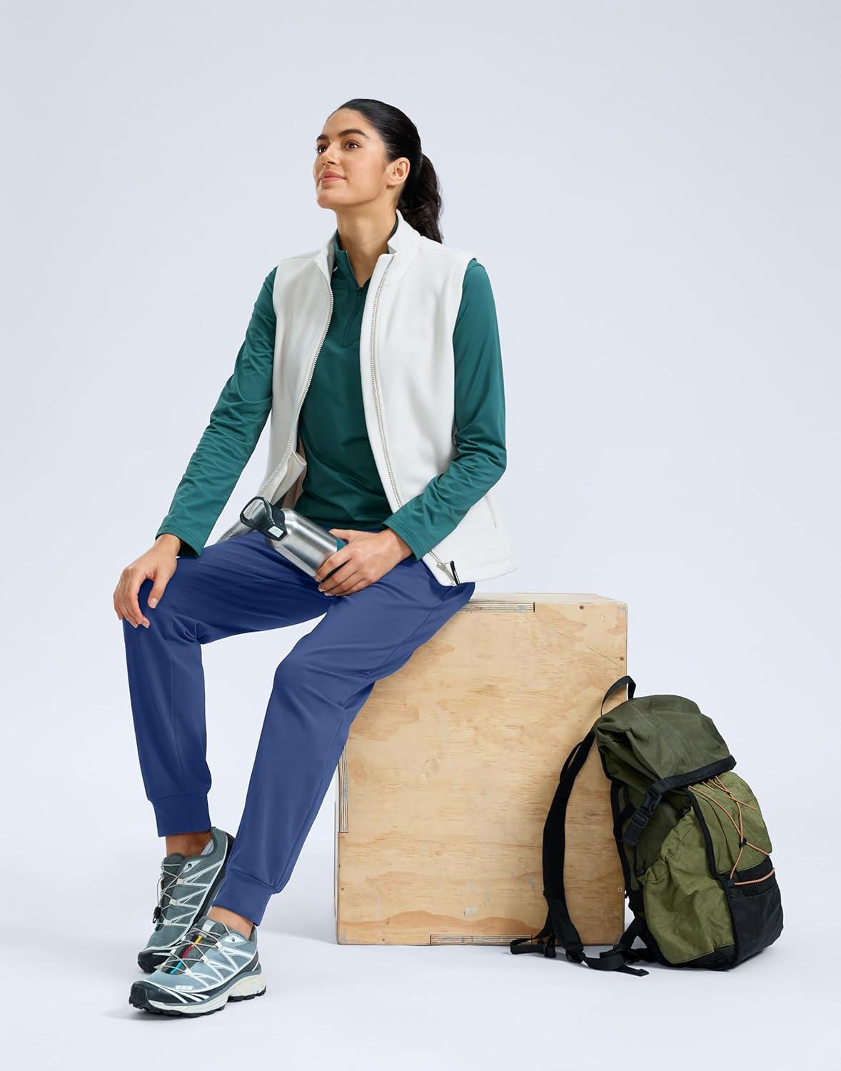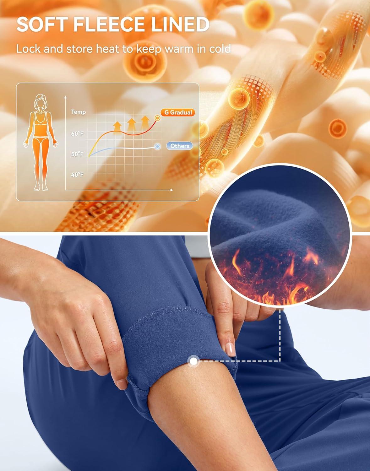 G Gradual Women’s Fleece Lined Joggers Water Resistant Hiking Pants High Waisted Winter Thermal Sweatpants 3 Zipper Pockets(Dark Blue)