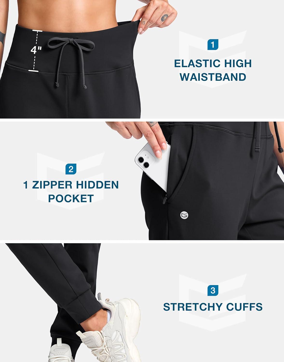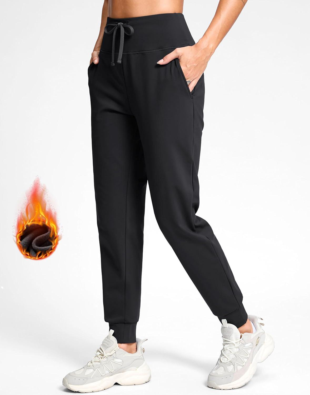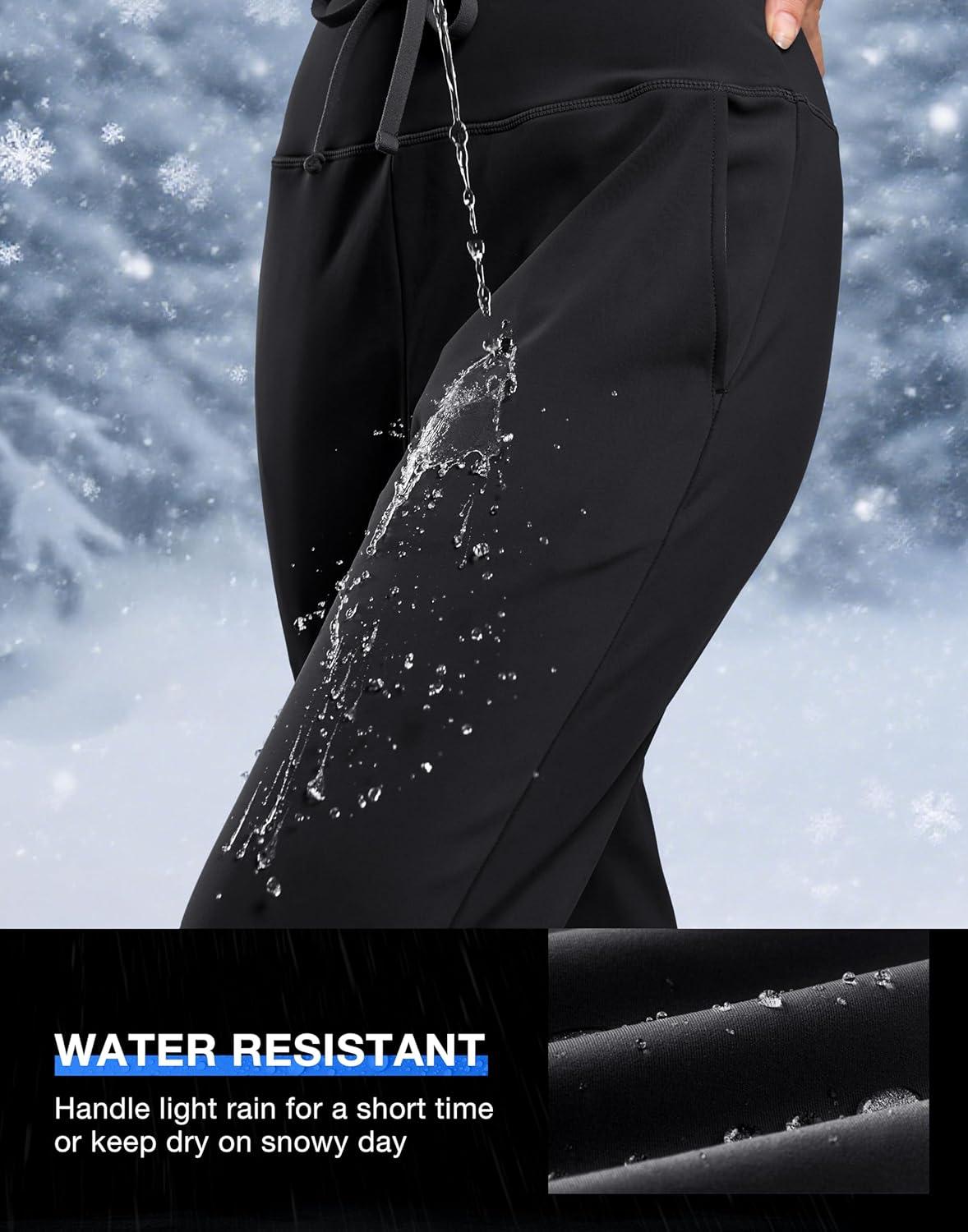 G Gradual Women's Fleece Lined Joggers with Zipper Pocket Water Resistant Running Hiking Pants Winter Warm Thermal Sweatpants(Black)