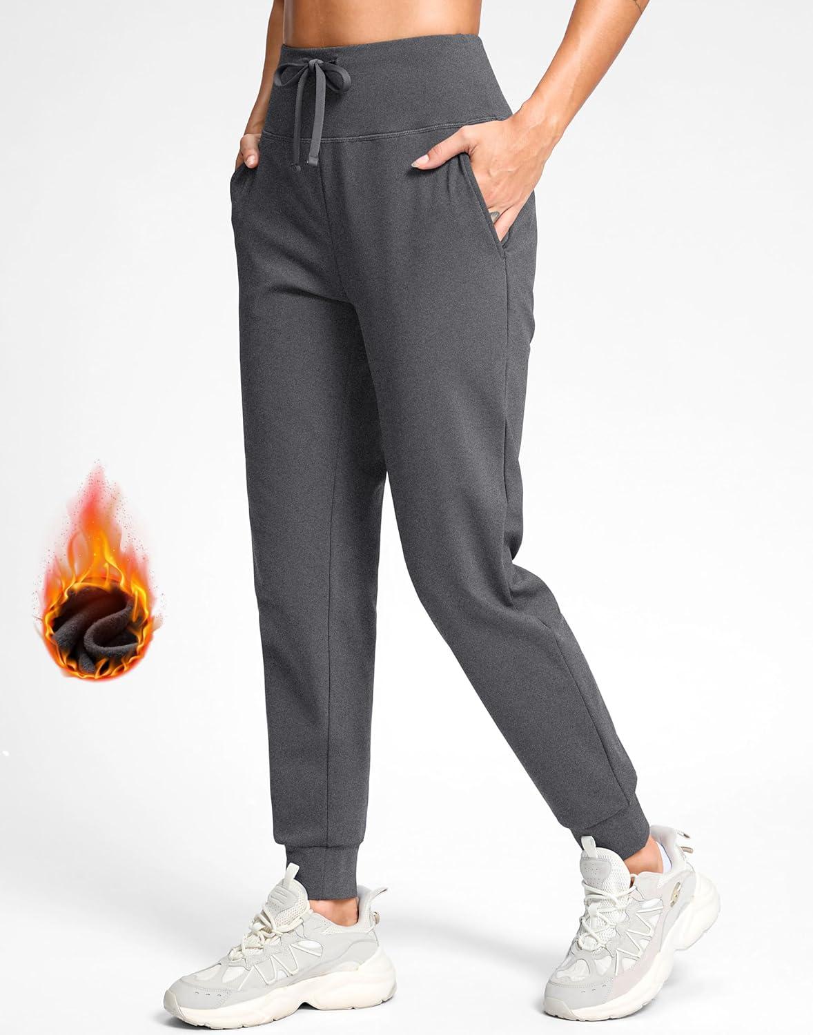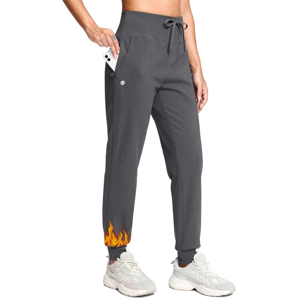 G Gradual Women's Fleece Lined Joggers with Zipper Pocket Water Resistant Running Hiking Pants Winter Warm Thermal Sweatpants(Charcoal)