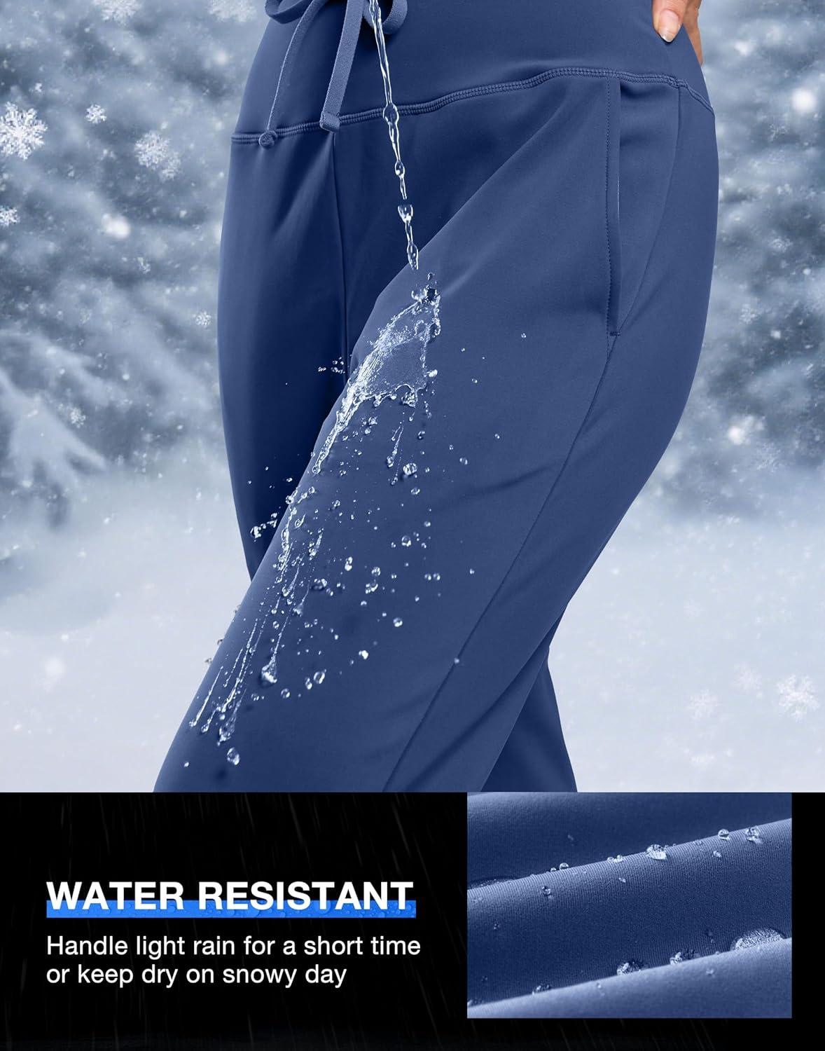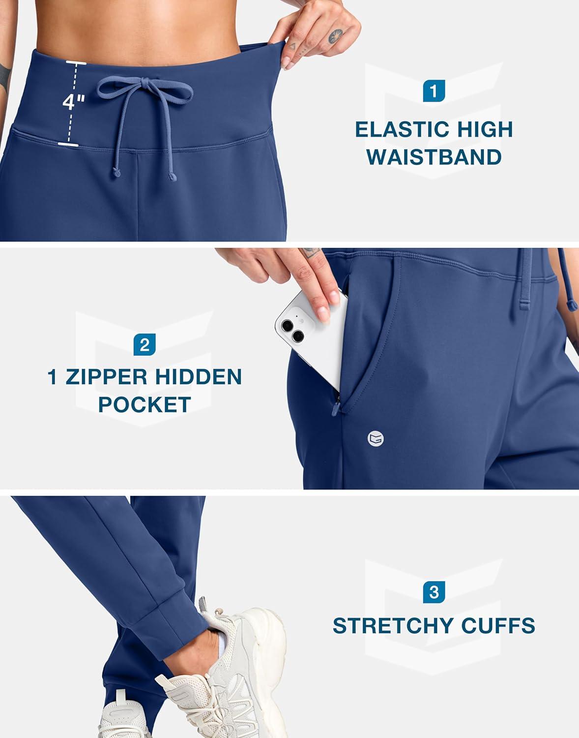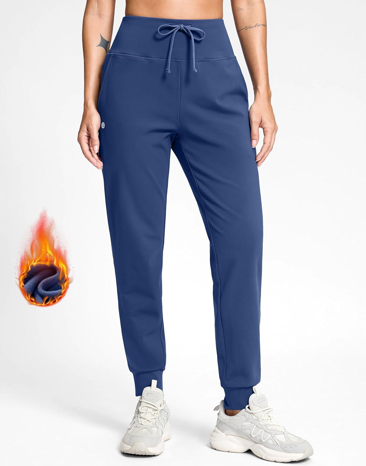 G Gradual Women’s Fleece Lined Joggers with Zipper Pocket Water Resistant Running Hiking Pants Winter Warm Thermal Sweatpants(Dark Blue)