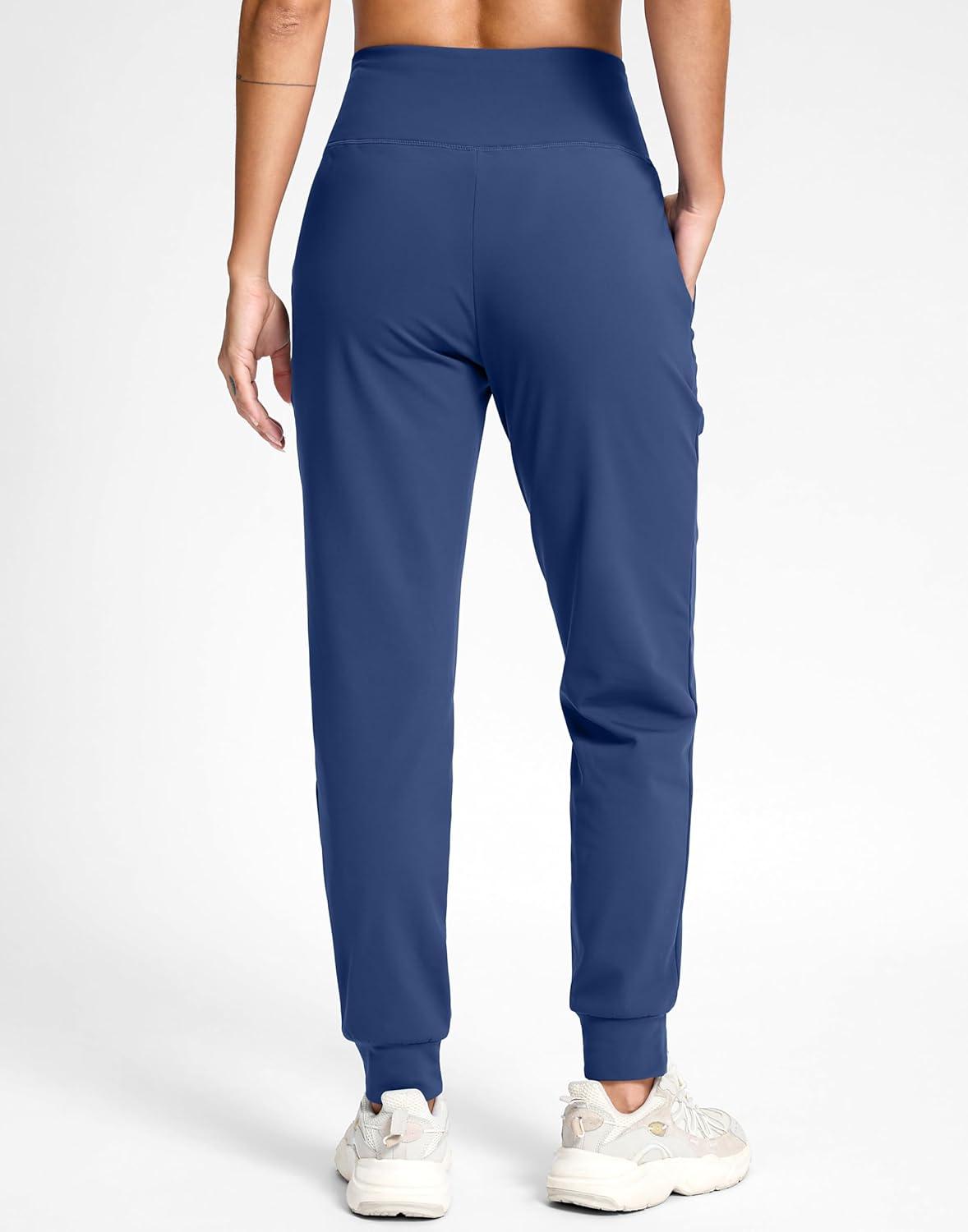 G Gradual Women's Fleece Lined Joggers with Zipper Pocket Water Resistant Running Hiking Pants Winter Warm Thermal Sweatpants(Dark Blue)