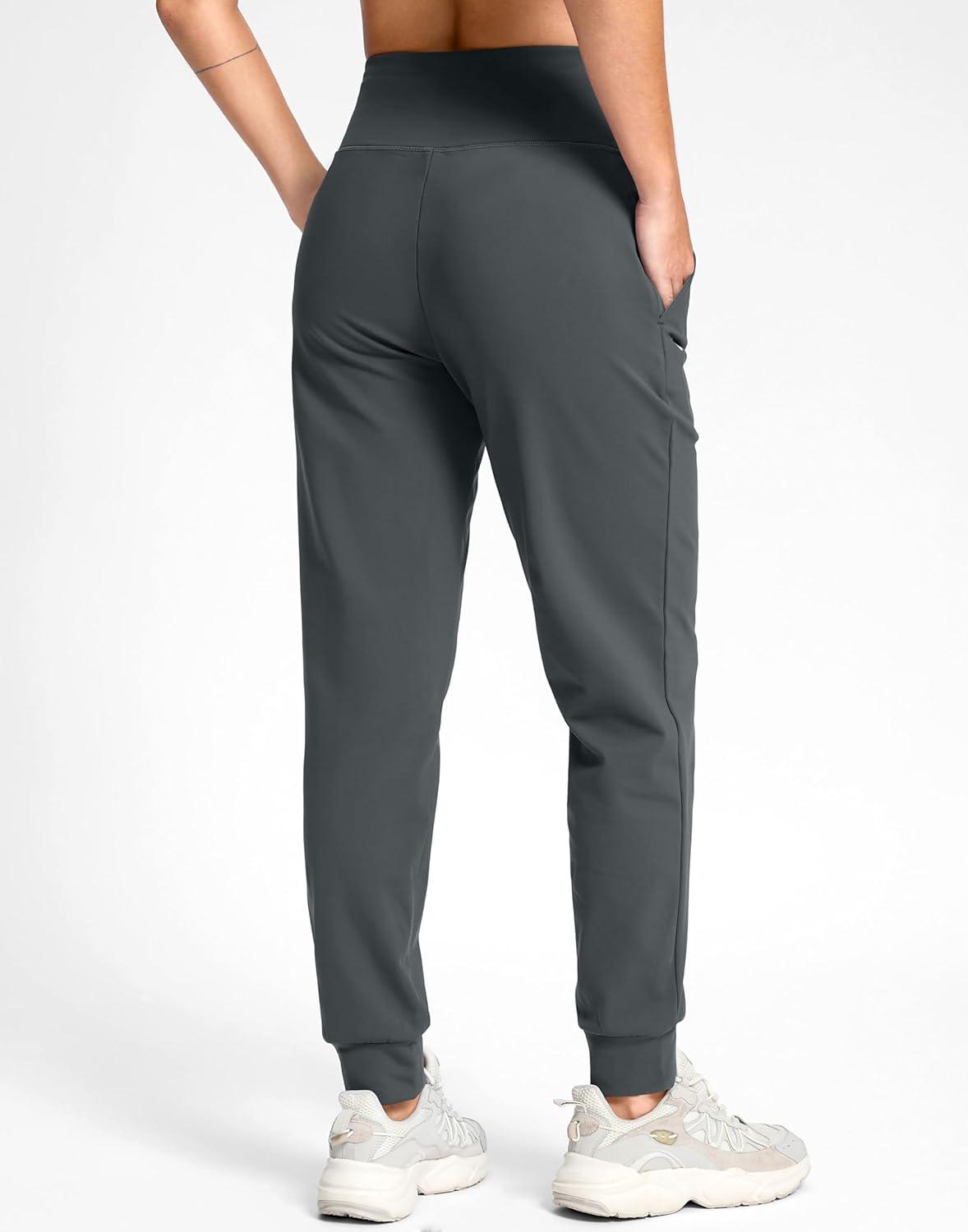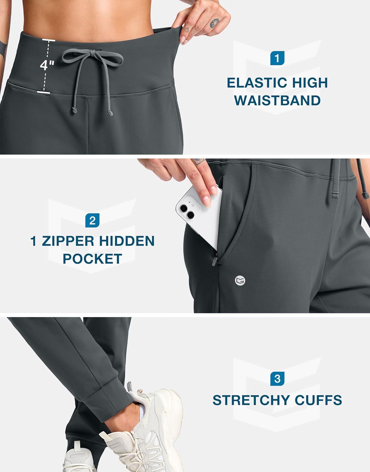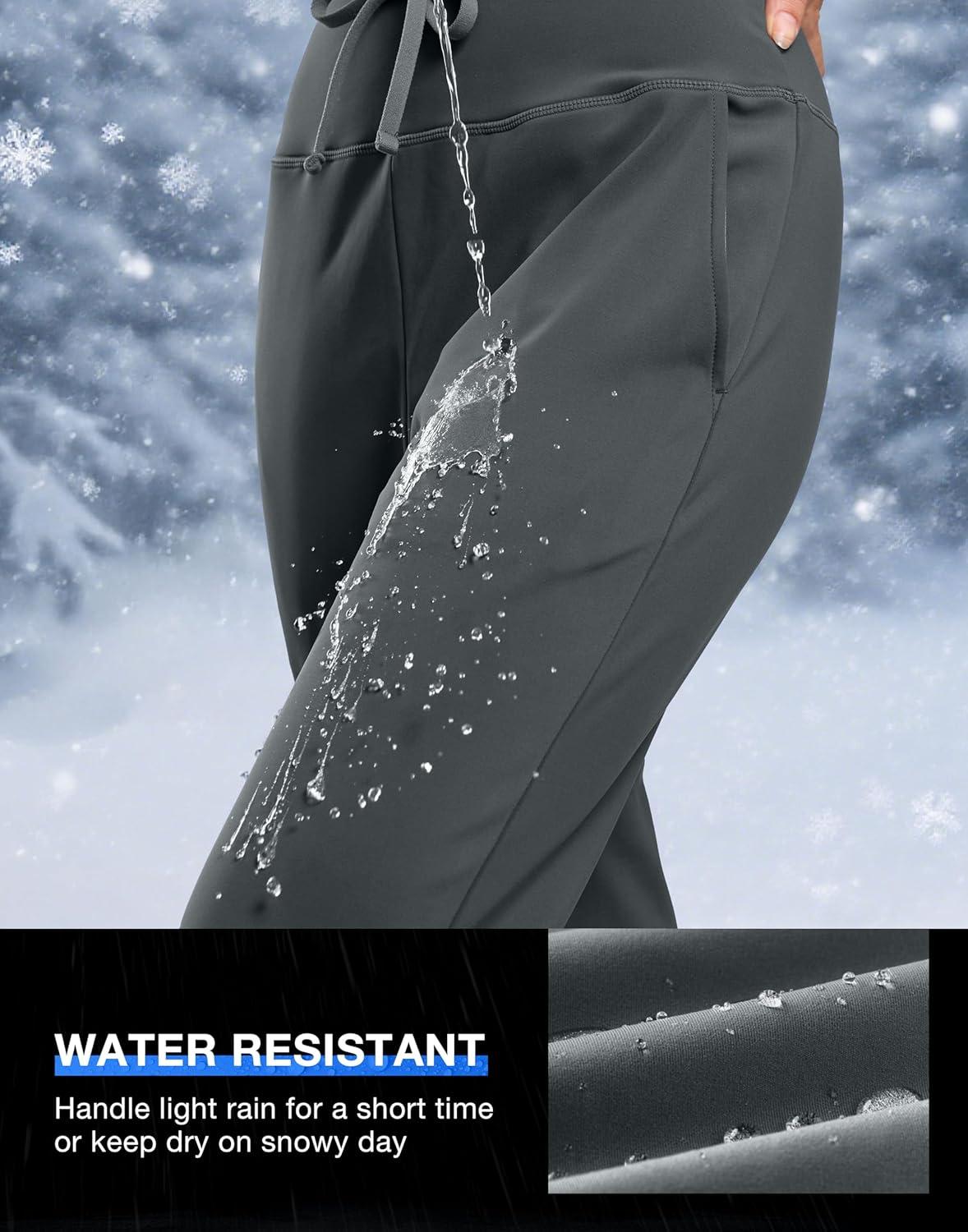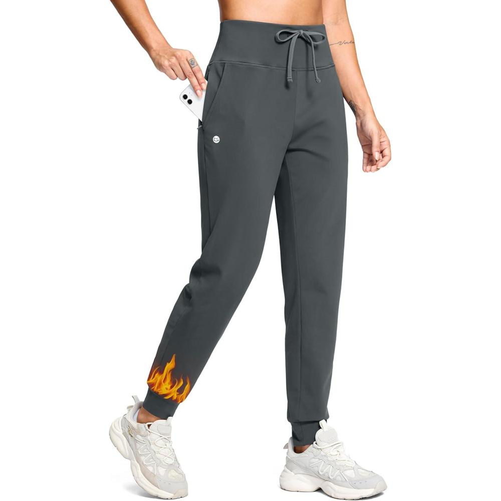 G Gradual Women's Fleece Lined Joggers with Zipper Pocket Water Resistant Running Hiking Pants Winter Warm Thermal Sweatpants(Dark Grey)