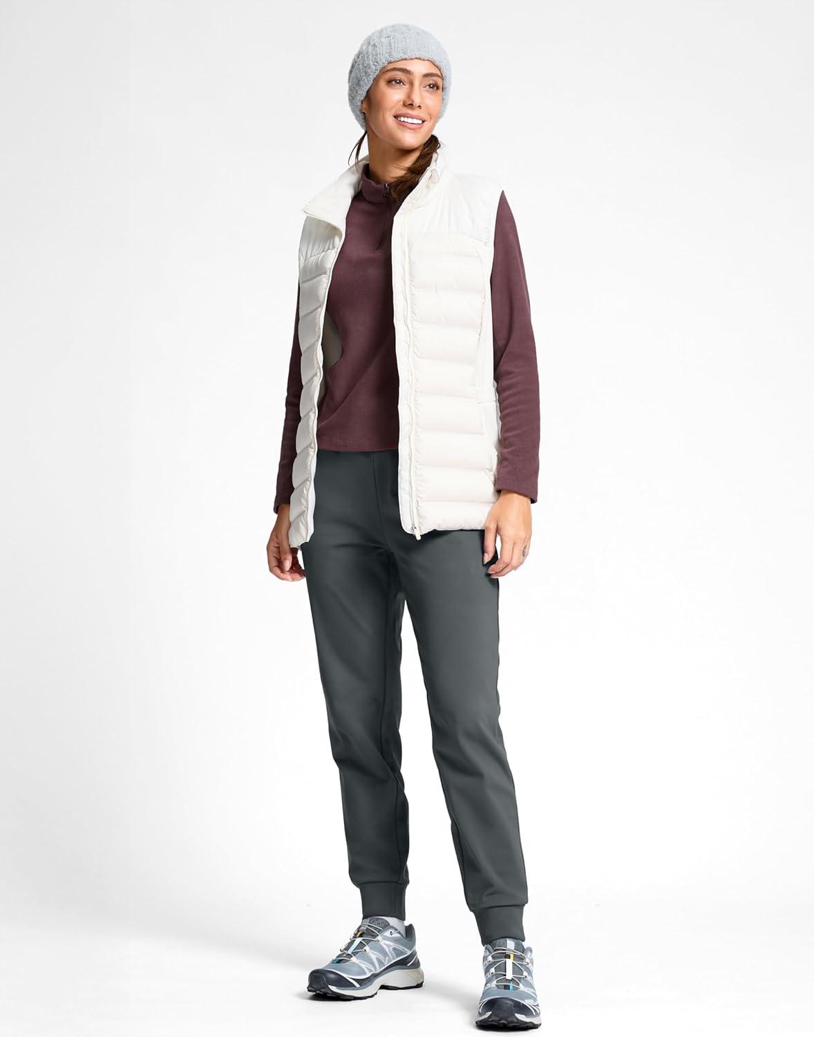 G Gradual Women’s Fleece Lined Joggers with Zipper Pocket Water Resistant Running Hiking Pants Winter Warm Thermal Sweatpants(Dusty Grey)