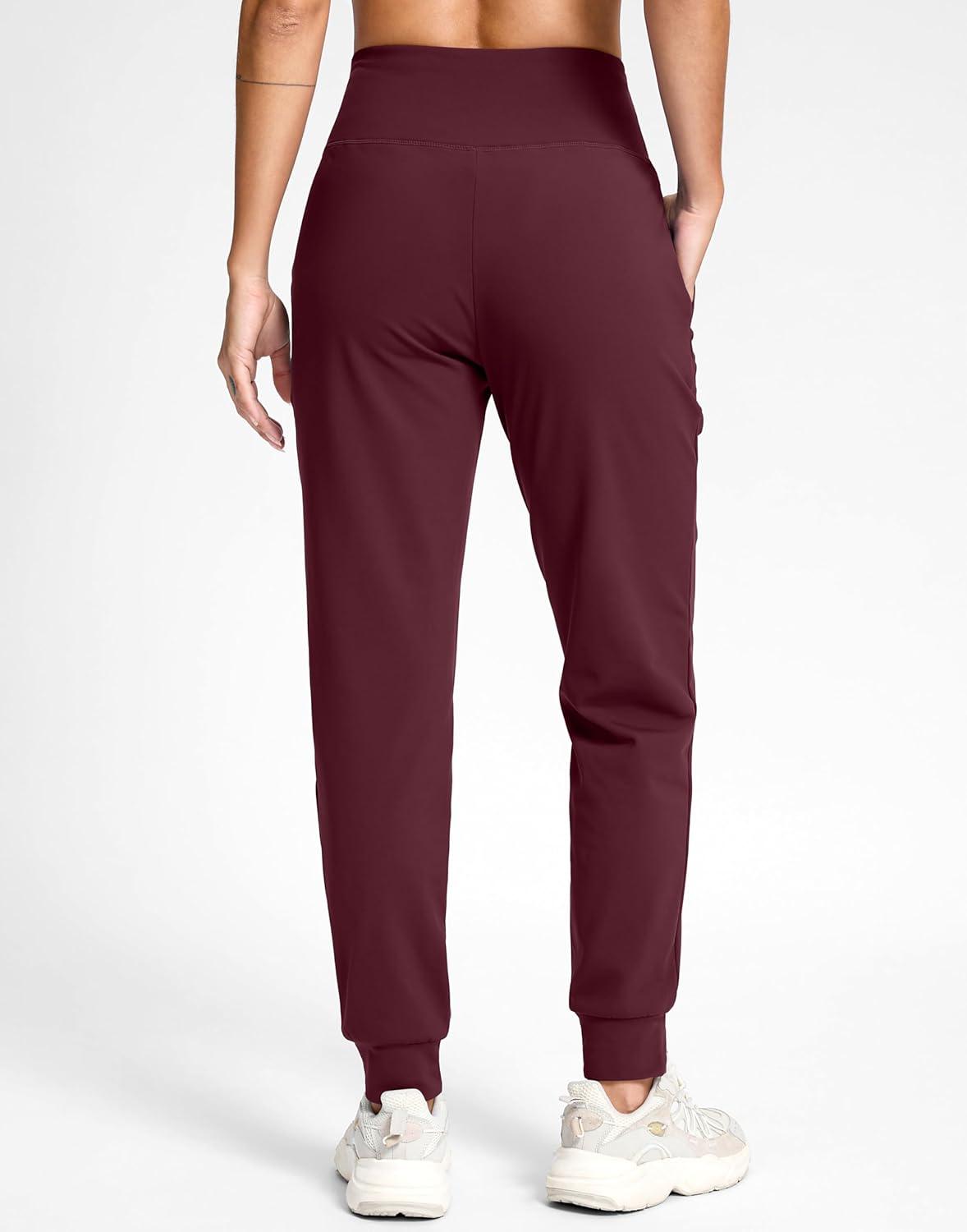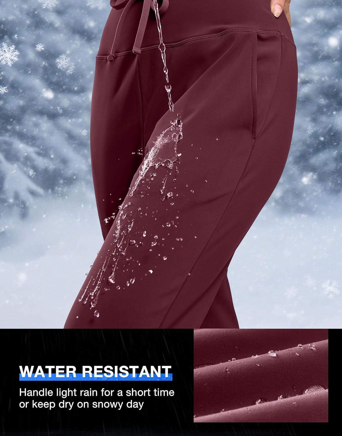 G Gradual Women's Fleece Lined Joggers with Zipper Pocket Water Resistant Running Hiking Pants Winter Warm Thermal Sweatpants(Wine)