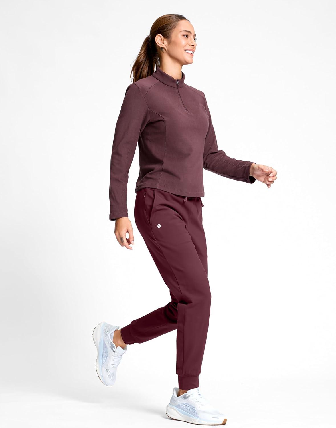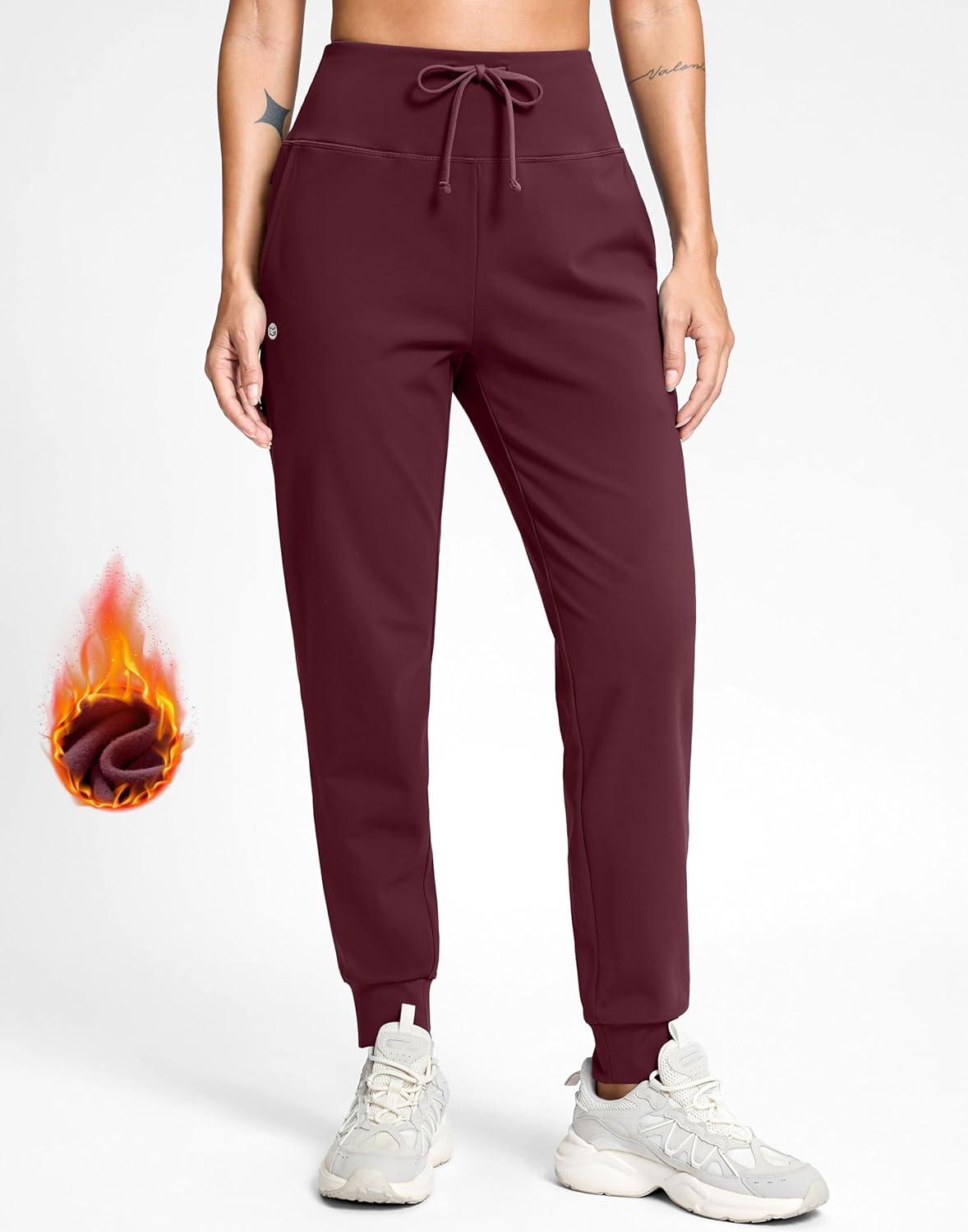 G Gradual Women’s Fleece Lined Joggers with Zipper Pocket Water Resistant Running Hiking Pants Winter Warm Thermal Sweatpants(Wine)