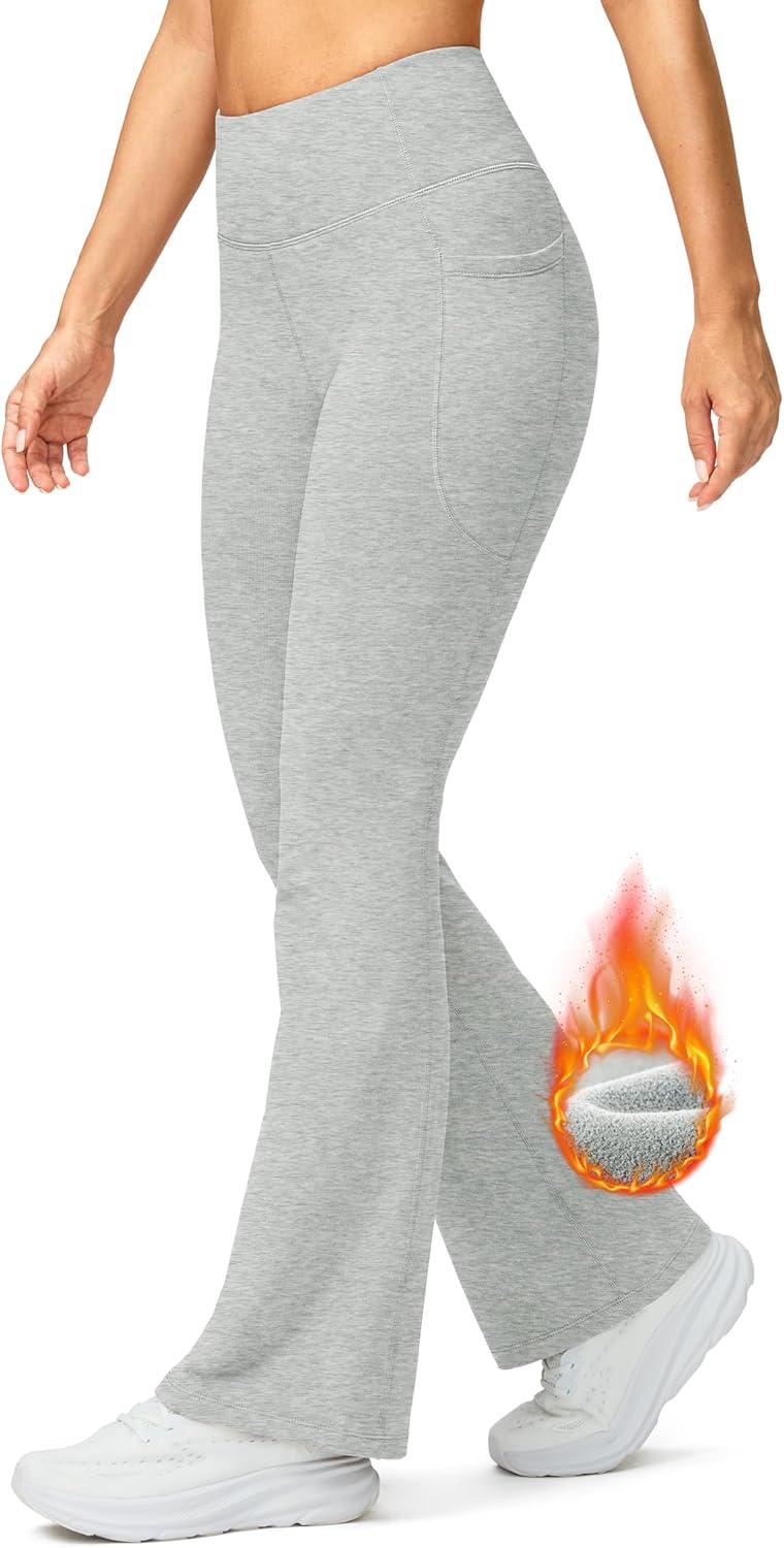 G Gradual Women’s Fleece Lined Pants High Waist Winter Thermal Warm Flare Leggings Hiking Yoga Pants Women with Pockets(Grey Heather)